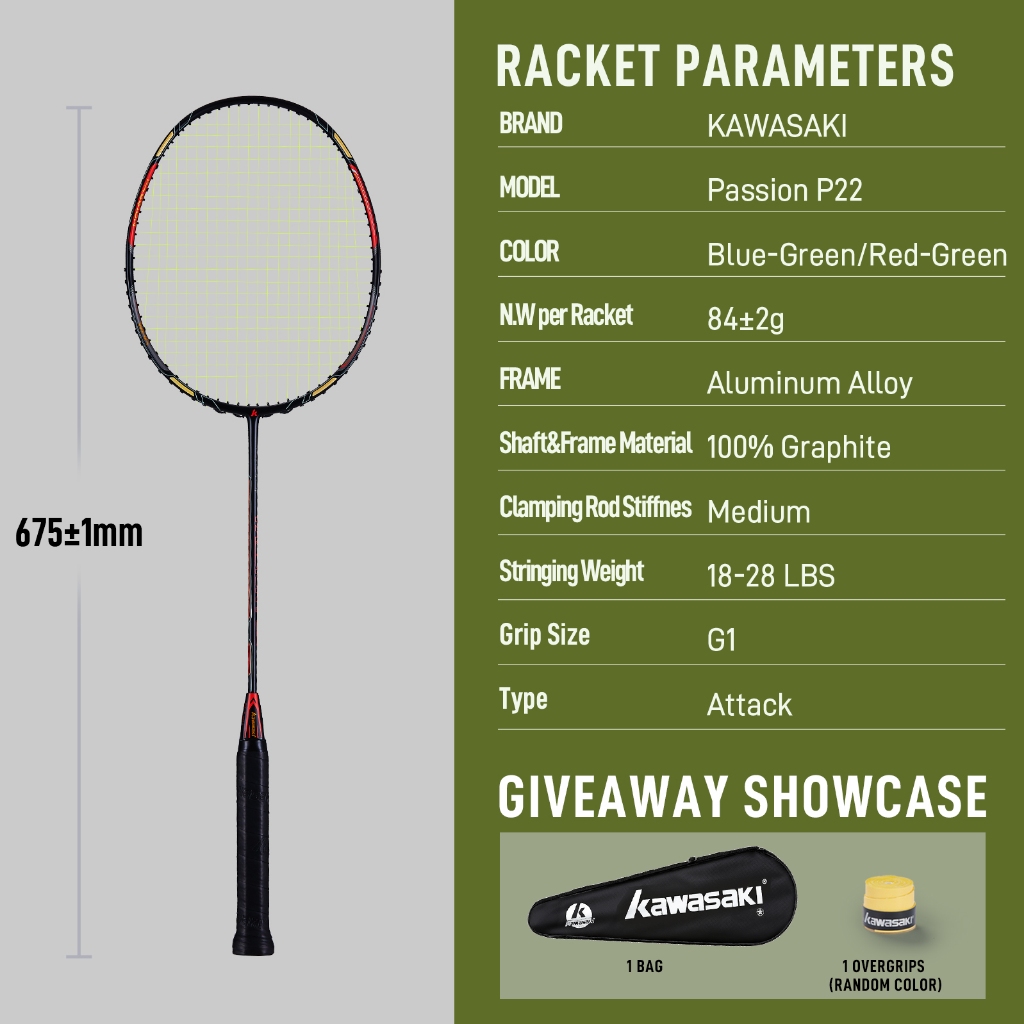 Kawasaki Badminton Racket Full Carbon PASSION P22 18-28LBS 4U For Beginner All-around Or Attack Outdoor Entertainment