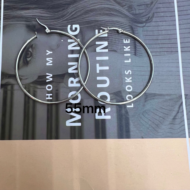 Kayangkaya Stainless Circle Earing Big Hoop Earring Silver Loop Hoop Earing Size 12mm to 55mm