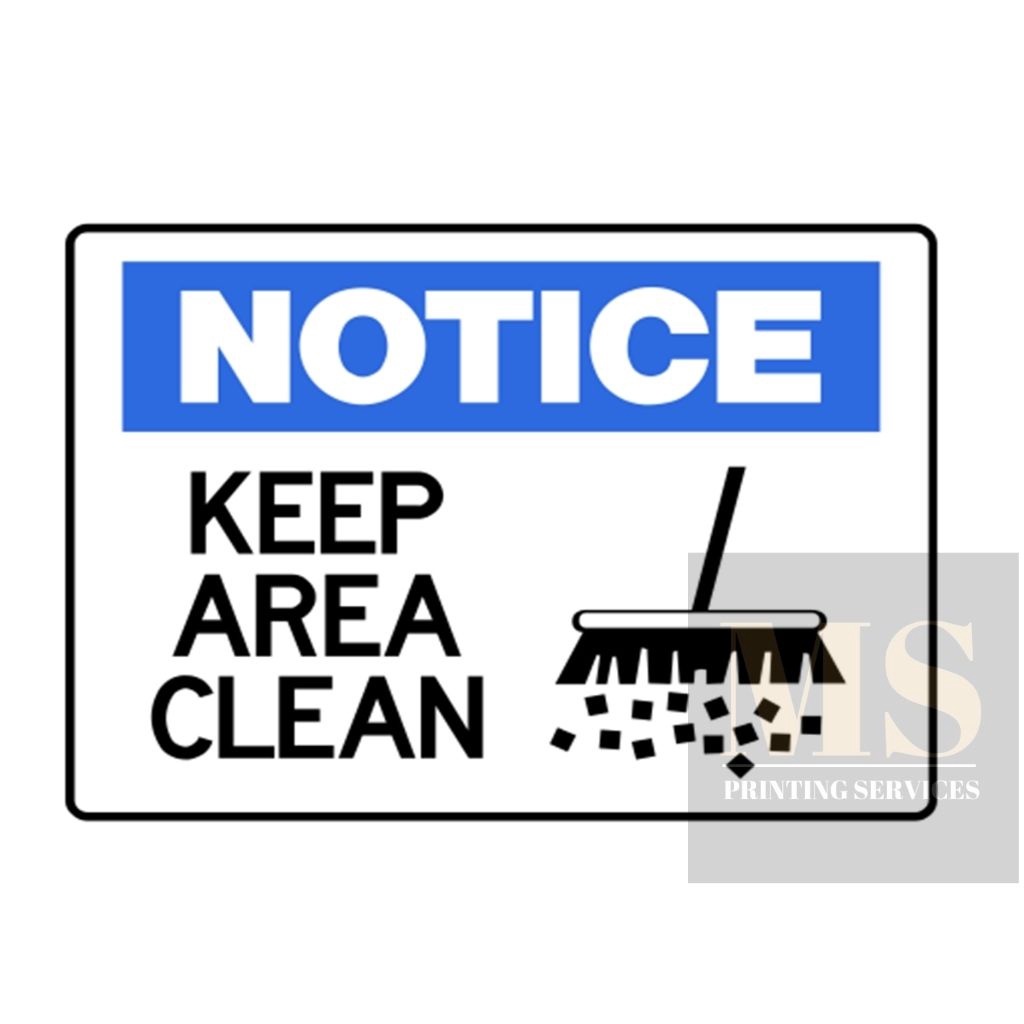 Keep Area Clean Sign (Laminated Signage and Waterproof Vinyl Sticker A4 Size)
