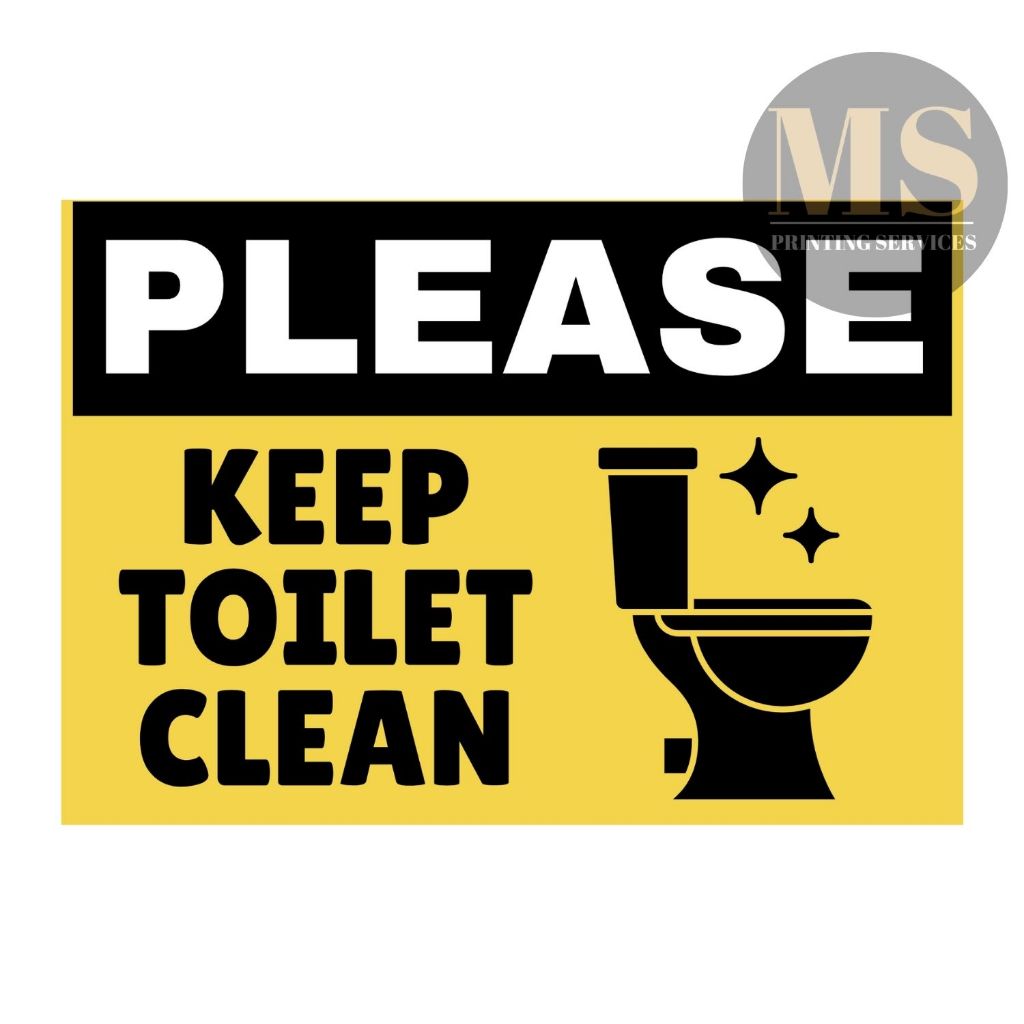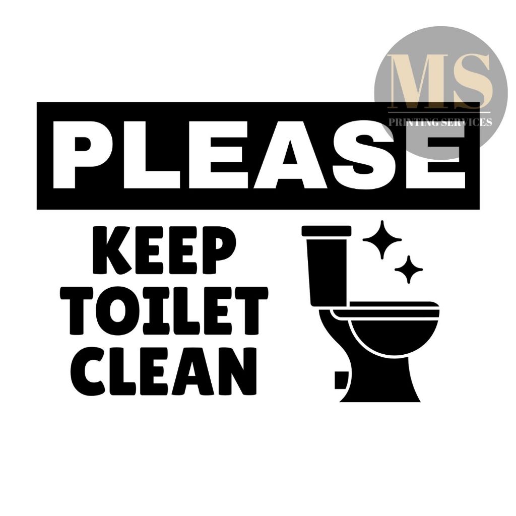Keep Toilet Clean Signage (Laminated Signage and Waterproof Vinyl Sticker A4 Size)