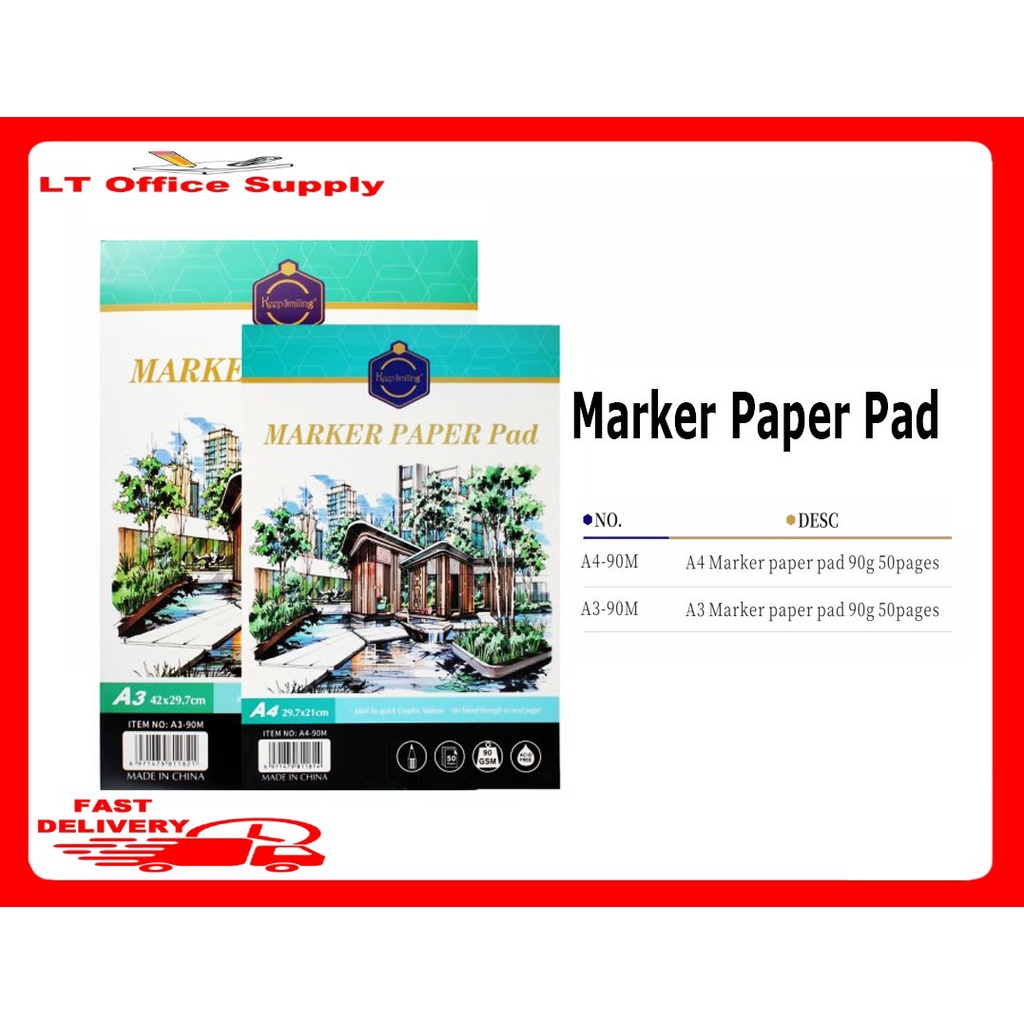Keep smiling Marker paper pad / Marker pad 50sheets 90gsm Size A3 (42x29.7cm)