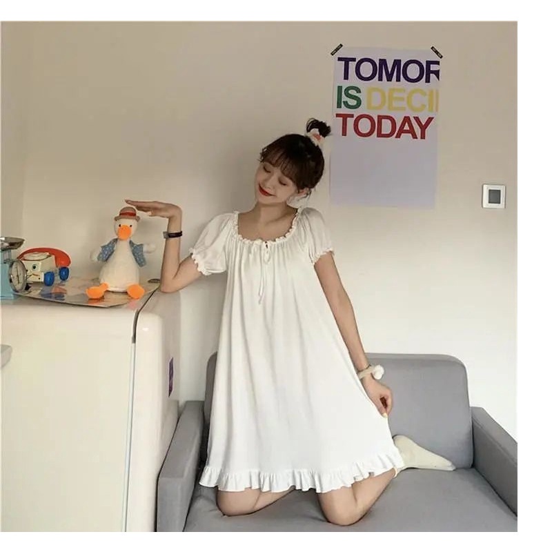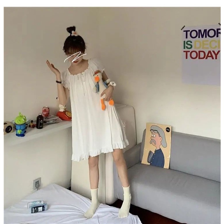【Fast delivery】Sleepwear Victorian Nightgown White Long Dress Cotton Sleepshirt Long Sleeve Pajama Dress Vintage Loungewear for Women Plus Size White