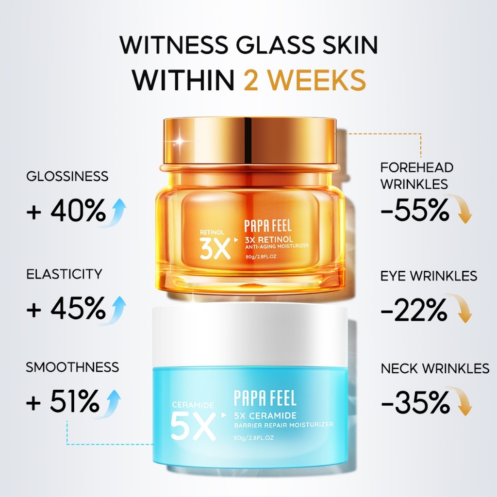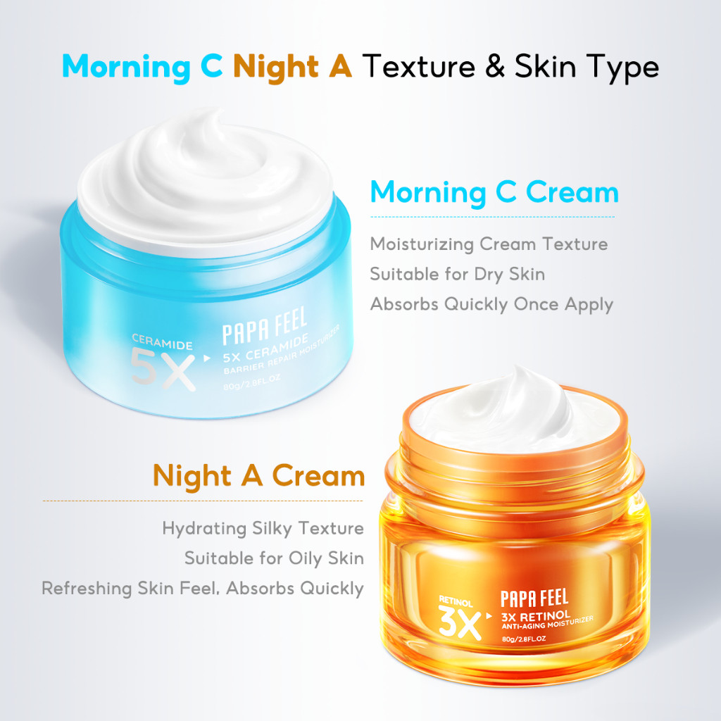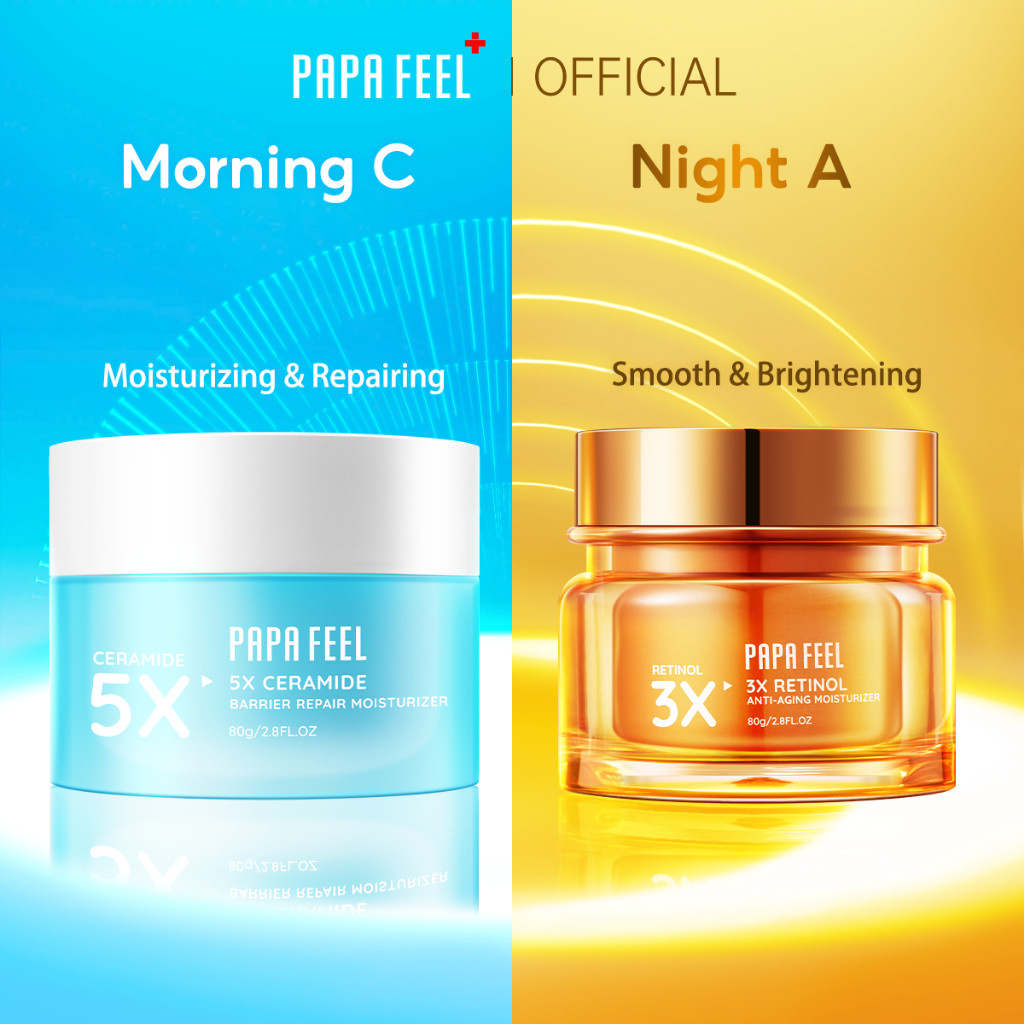 PAPA FEEL【Morning C Night A Moisturizer】Morning Barrier Repair Cream 80g + Night Collagen Anti Agin