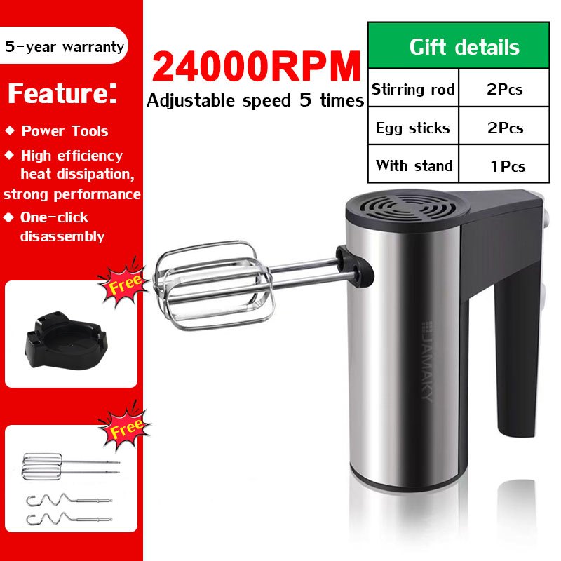 【10 -year warranty】Electric Hand Mixer 2400W Stainless steel housing 5 Speed Electric Mixer Househol