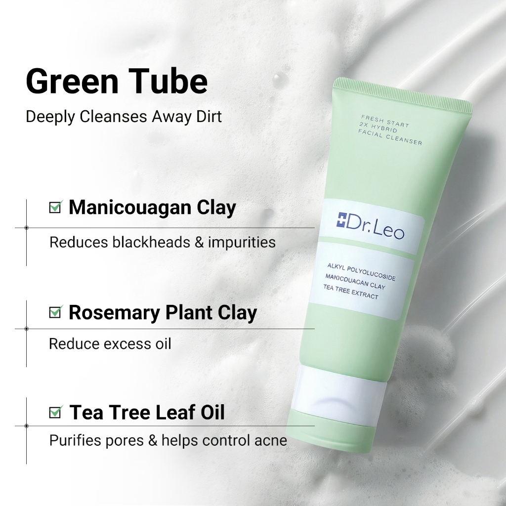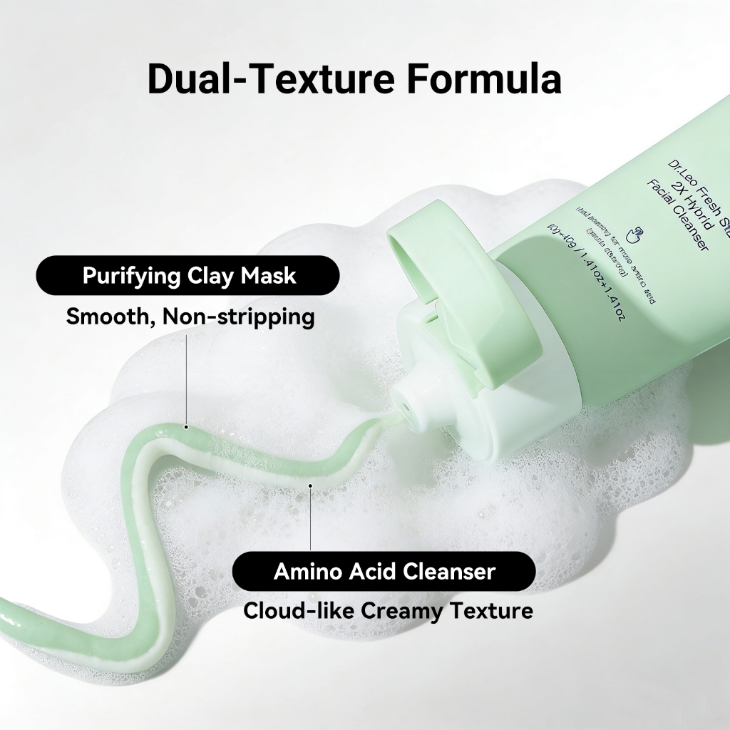 [Buy 1 Get 1 Free]Dr.Leo Fresh Start 2X Hybrid Facial Cleanser Amino Acid Cleanser Cleansing Clay Mask 2 IN 1 Deep Cleansing and Gentle Face Wash Oil Control Facial Wash Skincare 80ml