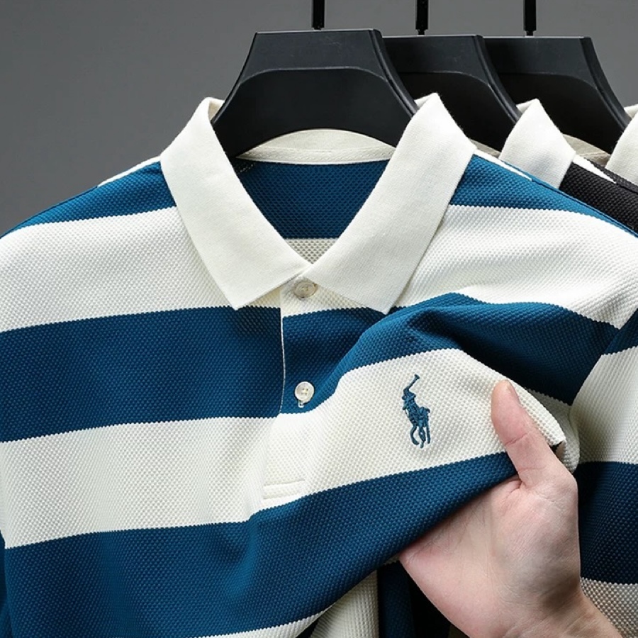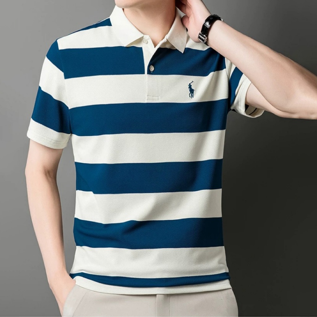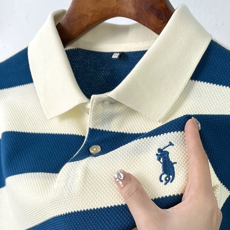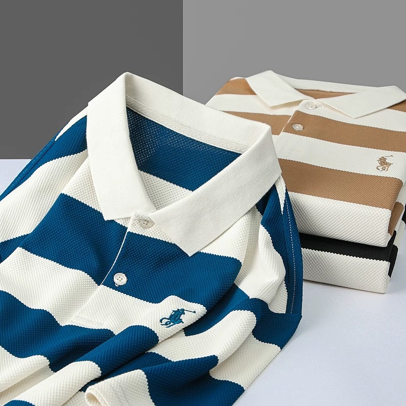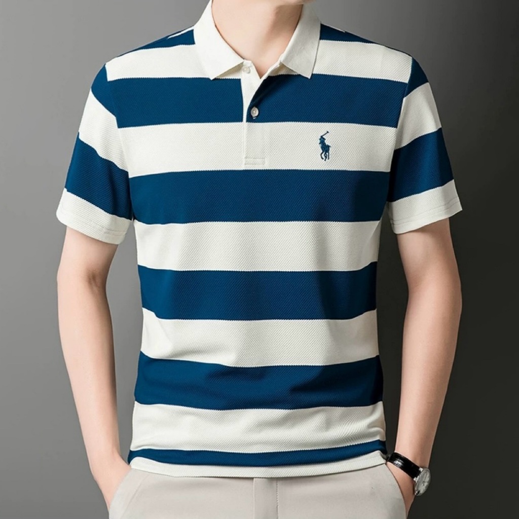 Polo Shirt For Men blue and white striped tops Casual Korean summer outfit for men new 2025 T Shirt