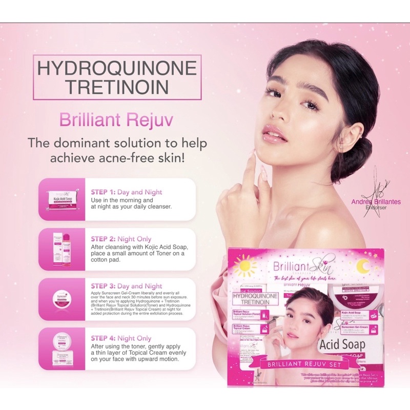 BRILLIANT Skin Rejuvenating Facial Set Hydroquinone Tretinoin Acne Pimples Skin Blemishes Andrea