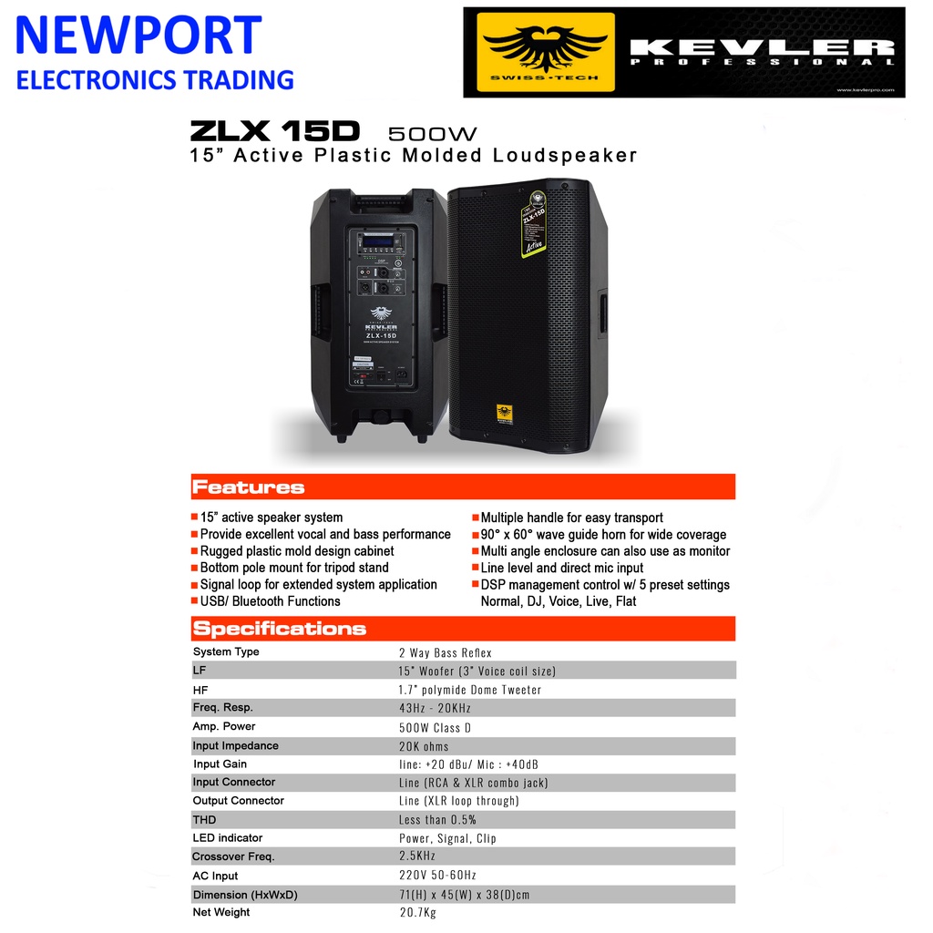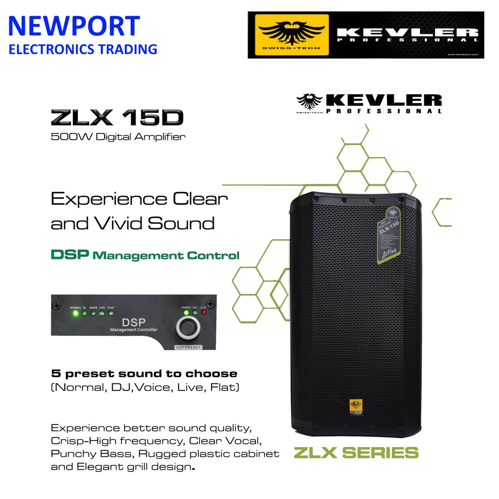 Kelver ZLX-15D 15 Inch 2 Way 500W Active Speaker with USB & Bluetooth, DSP With 5 Presets (1 Pc.)