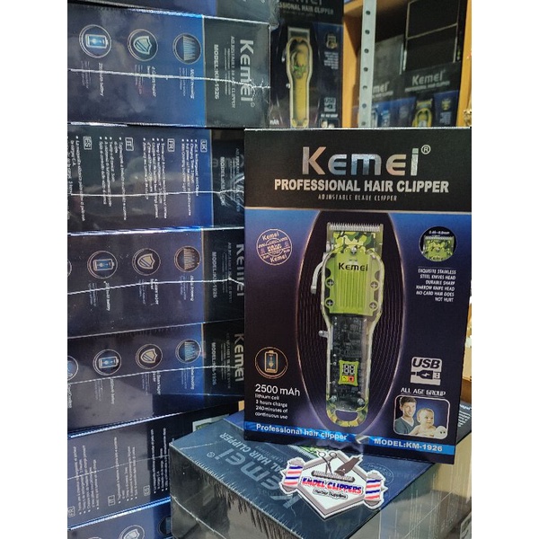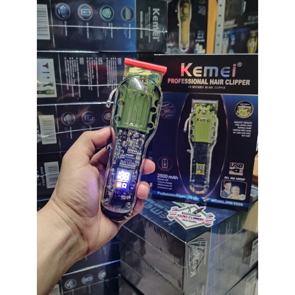 Kemei 1926 Professional Hair clipper (FreeLabaha) Camouflage Green Transparent Clipper 6500rpm LCD D