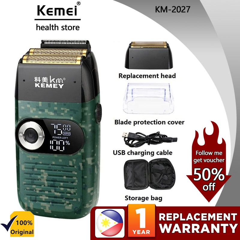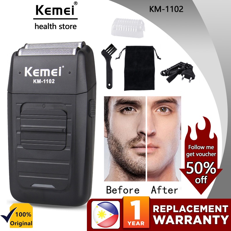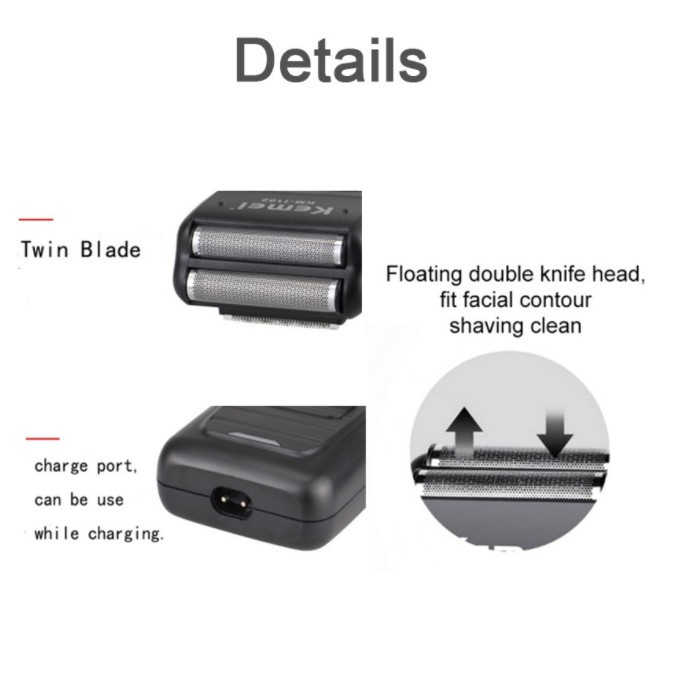 Kemei KM-1102 Beard Shaver for Men Machine Rechargeable Cordless Shaver For Men Twin Blade Reciprocating Beard Razor Face Care Trimmer Multifunction Strong Trimmer