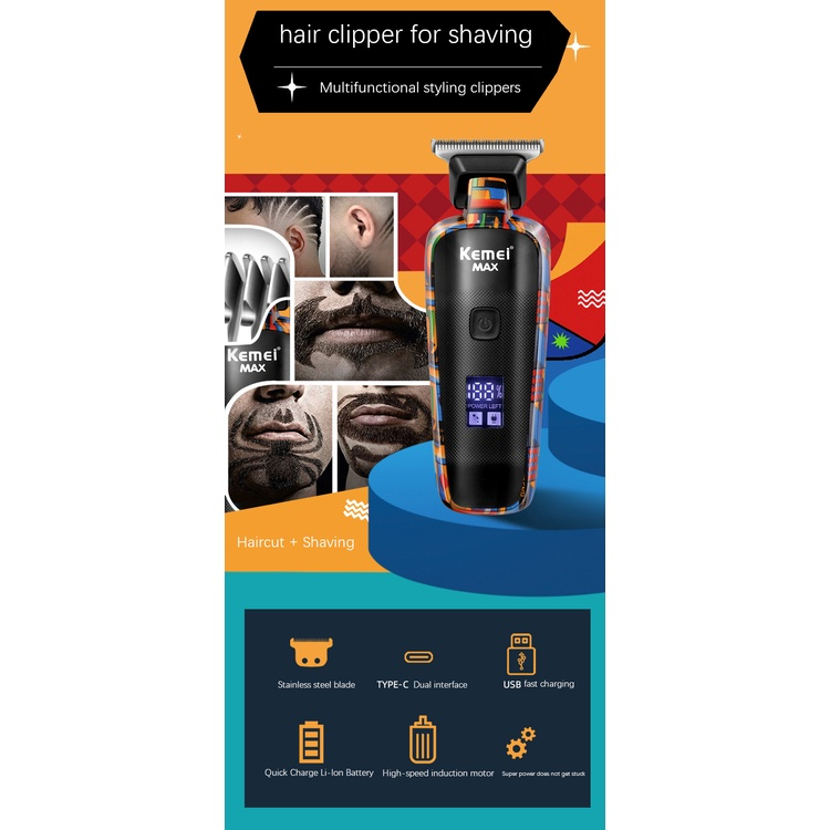 Kemei Multifunctional Hair Trimmer for Men Beard Trimer Professional Hair Clipper Barber Printing Graffiti Electric Razor Hair Cutting Machine Haircut Shaver KM-MAX5090