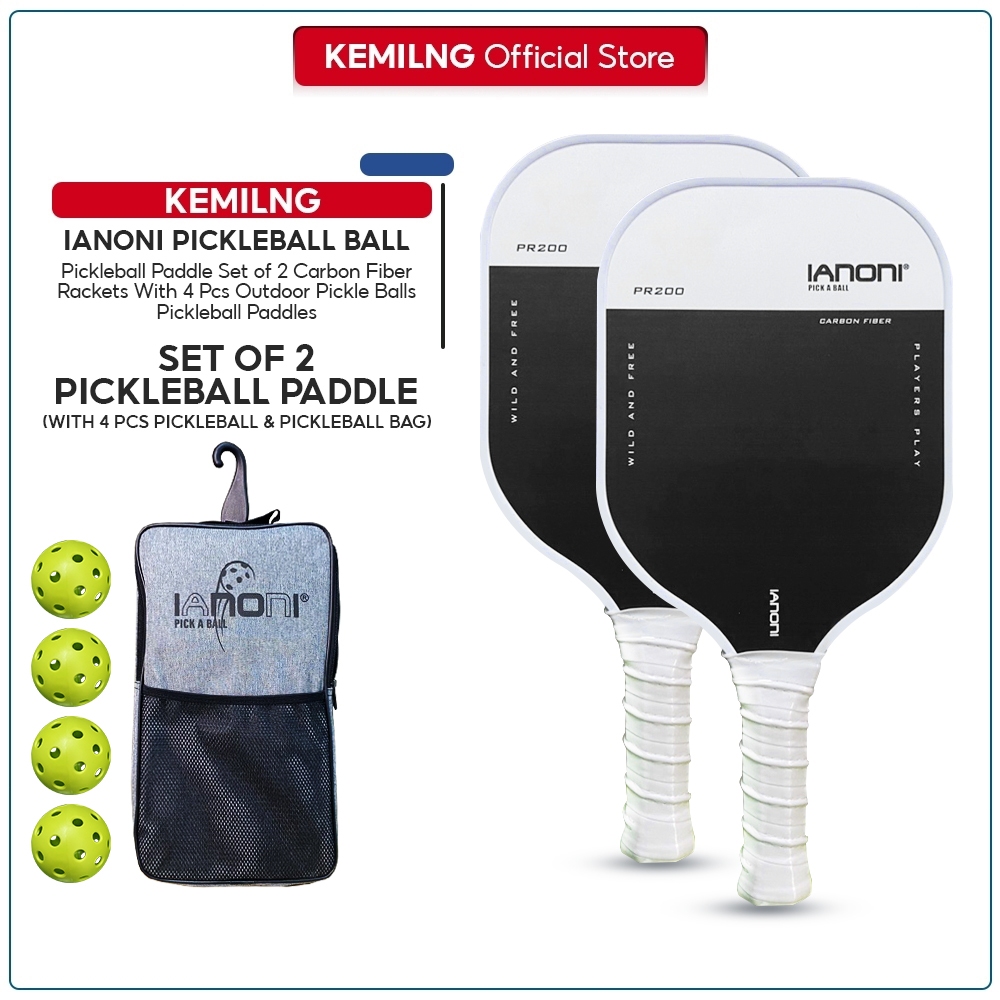 Kemilng Pickleball Paddle Set of 2 Carbon FiberRackets With 4 Pcs Outdoor Pickle Balls Pickleball