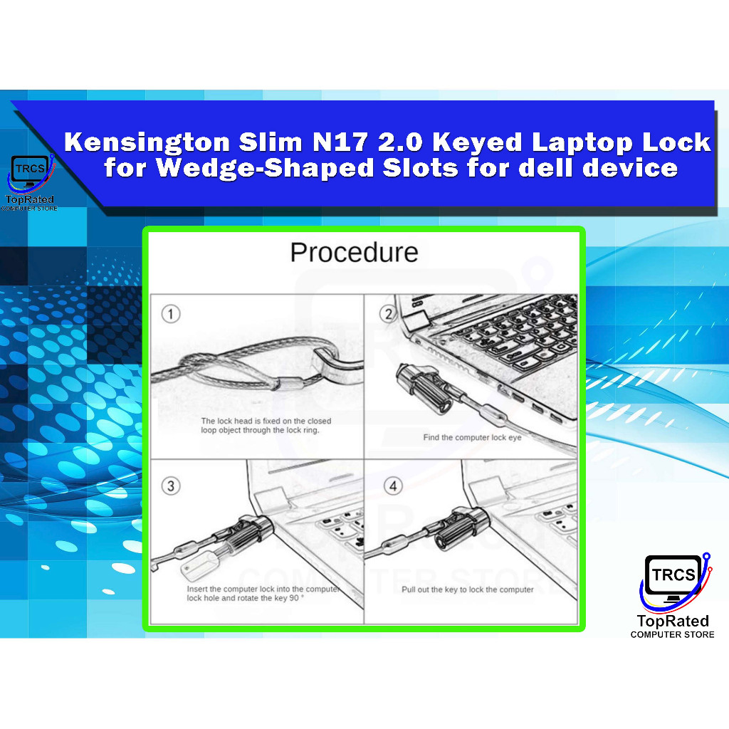 Kensington Slim N17 2.0 Keyed Laptop Lock for Wedge-Shaped Slots for Dell device