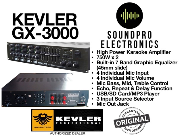 Kevler GX-3000 High Power Karaoke Amplifier 750W x 2 Max with USB and 7 Band EQ