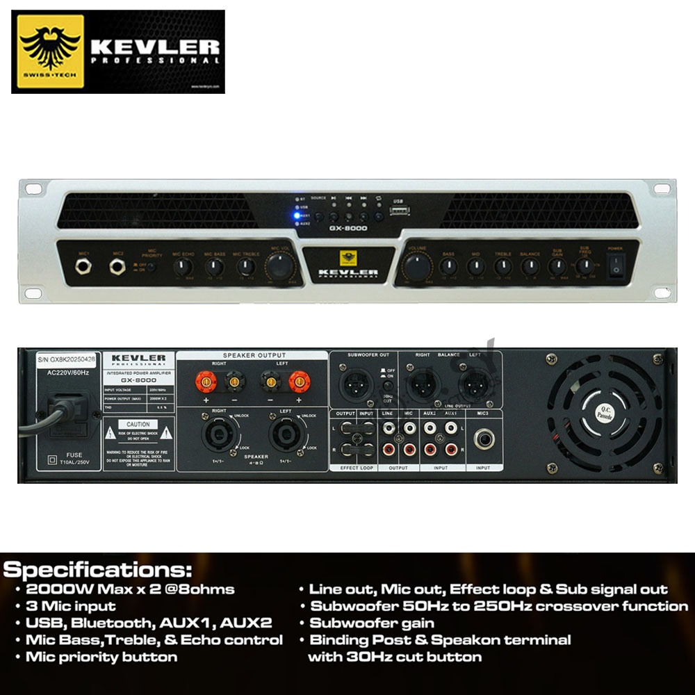 Kevler Professional GX-8000 2000 Watts High Power Integrated Amplifier