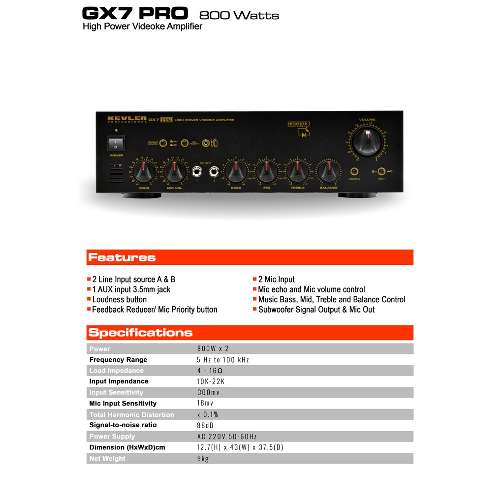 Kevler Professional GX7 PRO High Power Videoke Amplifier 800W x 2 Integrated Amplifier