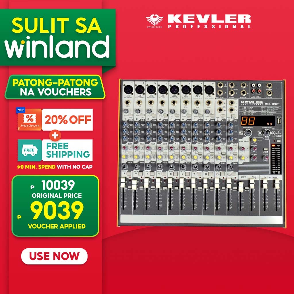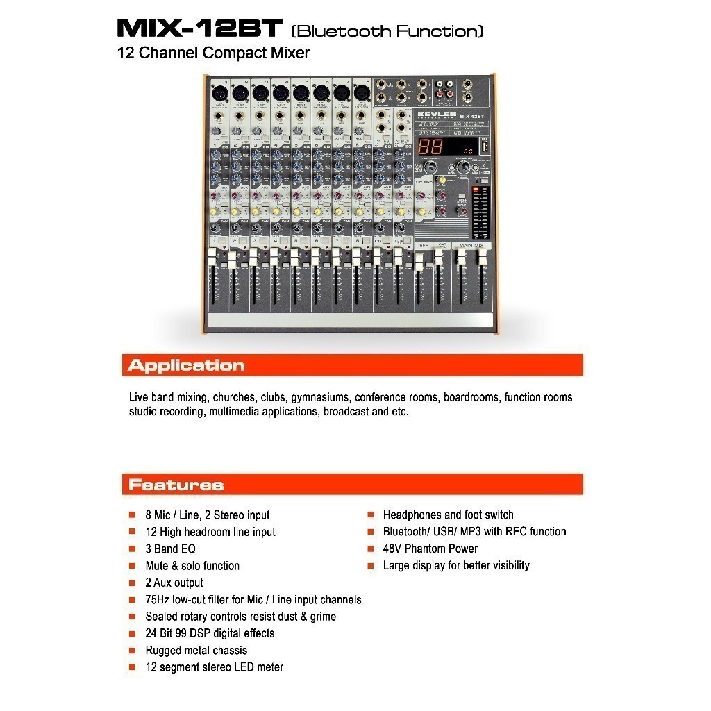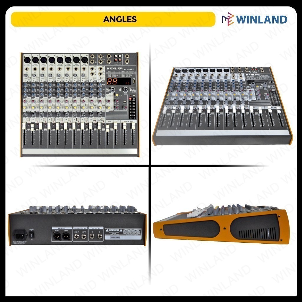 Kevler by Winland Professional Mixer MIX-12BT 12 CH 8 MIC / LINE 2 AUX W/ 24 BIT 99 DSP W/ USB & BT