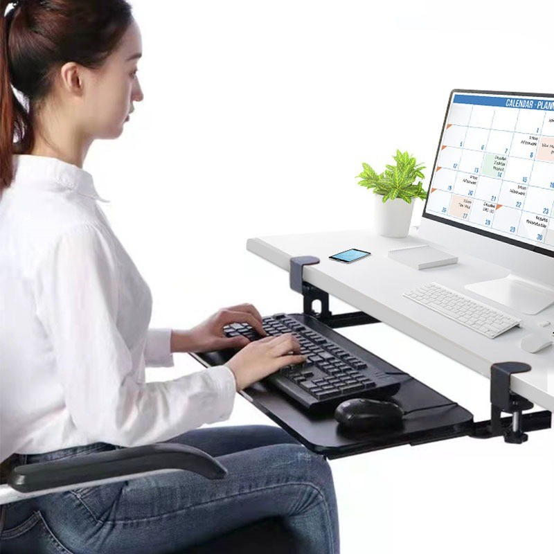 Keyboard Sliding Board Tray Mouse Holder Clamp Extension Bracket Under Desk Table Pull Out Rack Computer Accessories