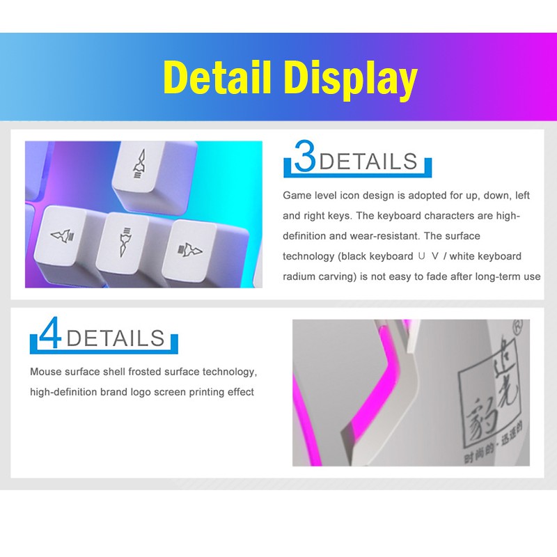 Keyboard set 104 keys Rainbow Gaming USB Wired Keyboard colorful button Mouse suit LED Backlit