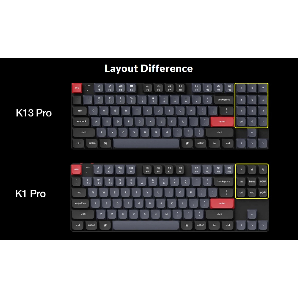 Keychron K13 Pro QMK Keyboard TKL w/ numpad Layout, Wired/Bluetooth, RGB LED, Gateron Low Profile