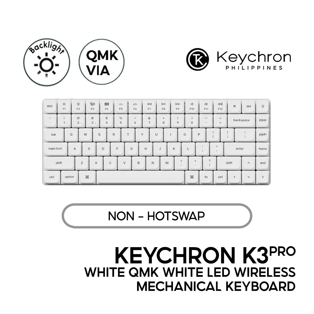 Keychron K3 Pro White QMK Mechanical Keyboard 75%, Wired/Bluetooth, White LED, QMK/Launcher, Non