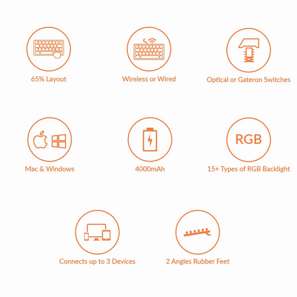 Keychron K6 Wireless Mechanical Keyboard (65% Layout, Wired/Bluetooth, RGB, Gateron, Aluminum)
