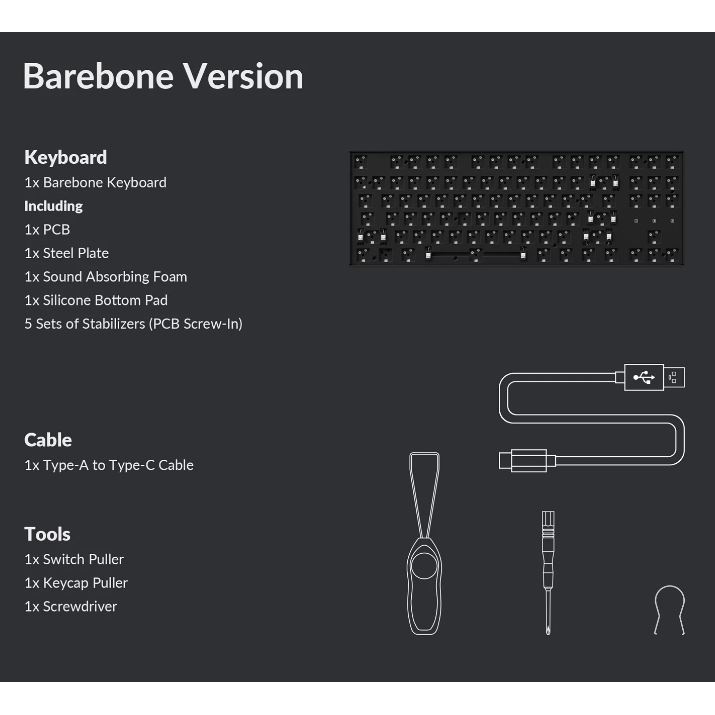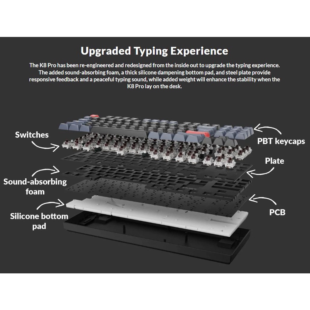 Keychron K8 Pro QMK Barebone Mechanical Keyboard (K8PZ1, TKL, Wired/Wireless, RGB)