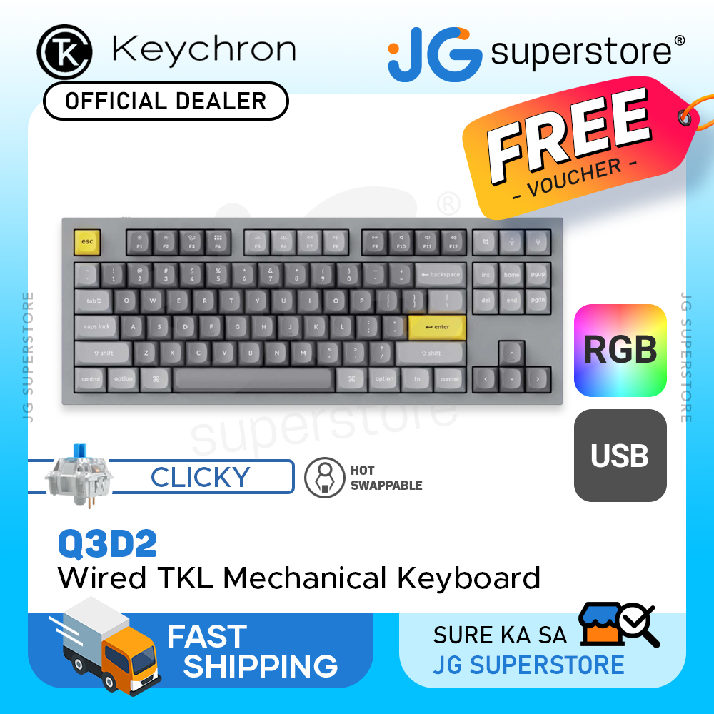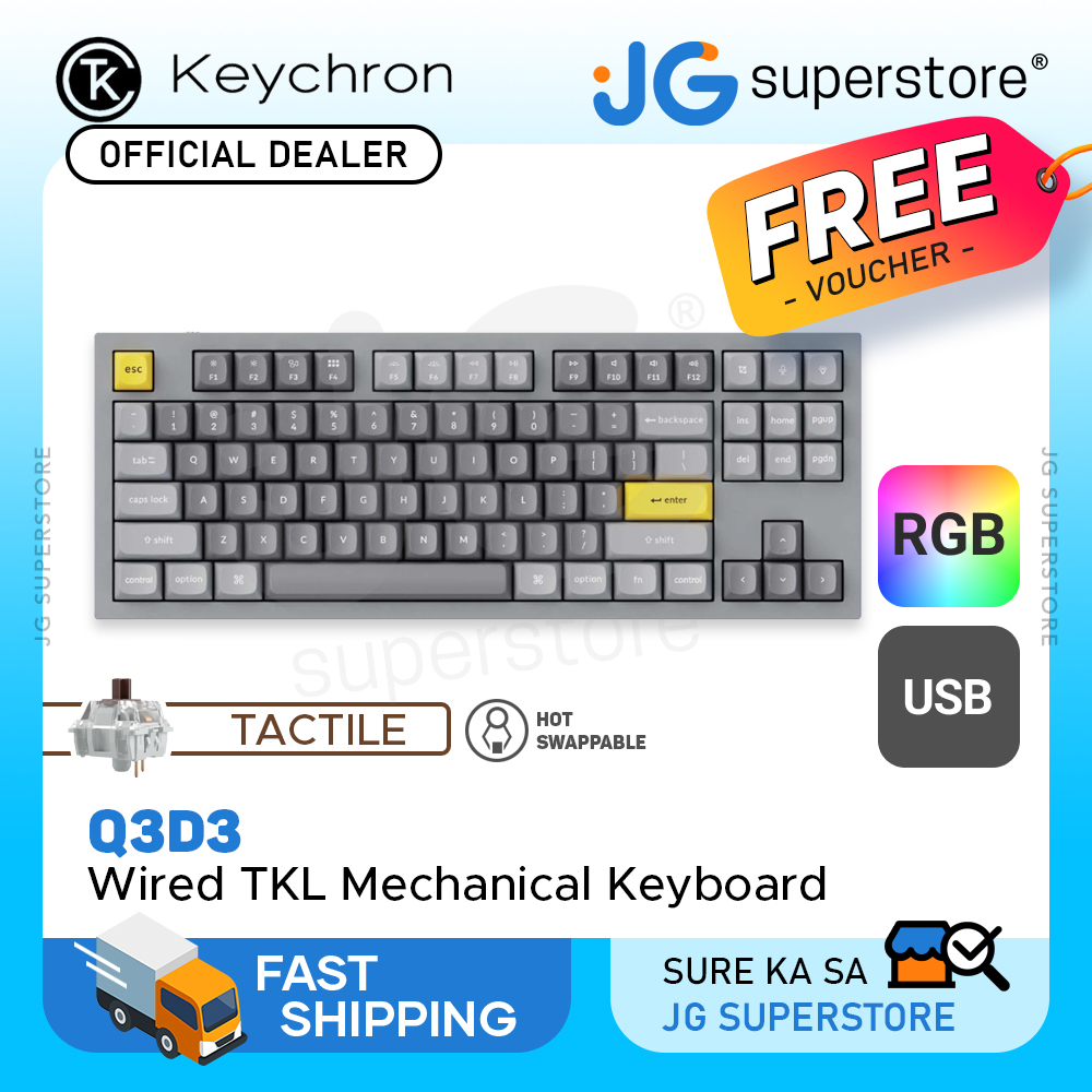 Keychron Q3 QMK 87 Keys RGB Compact Wired TKL Mechanical Keyboard Hot Swappable | Q3D1 Q3D2 Q3D3