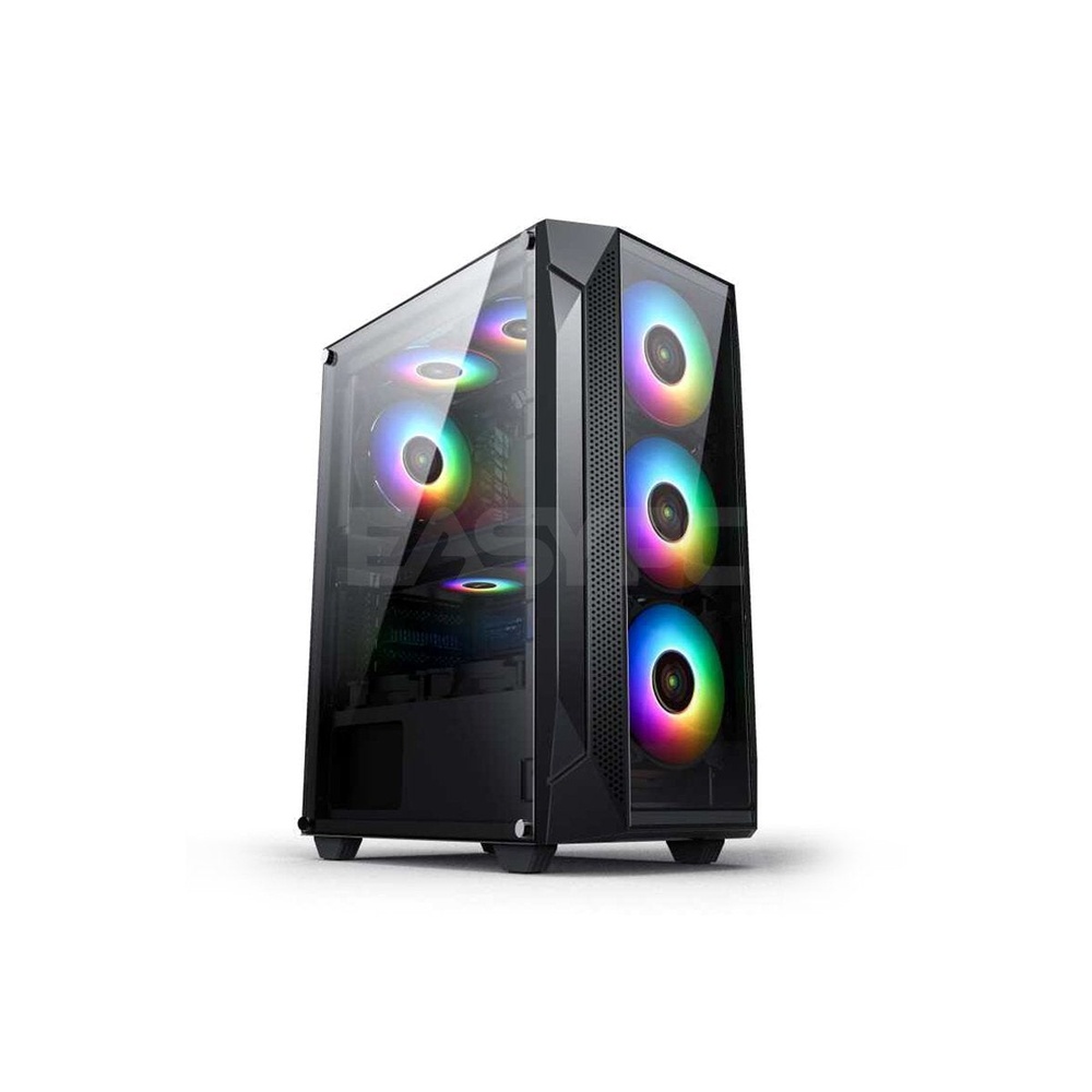 Keytech T1000 Mid Tower Gaming PC Case Black/White, T1000 Mid Tower Gaming Case, Tempered Glass side