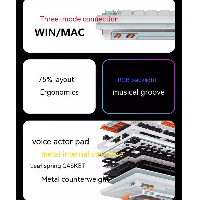Keyverse Infi75 Lite 75% Wireless Mechanical Keyboard, Gasket Structure, Hot Swappable RGB Custom Mechanical Keyboard