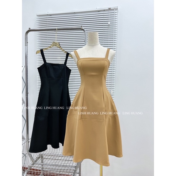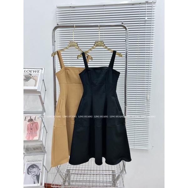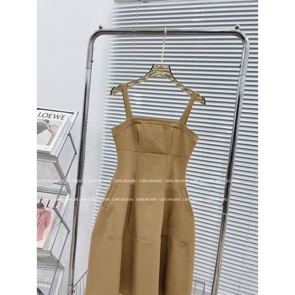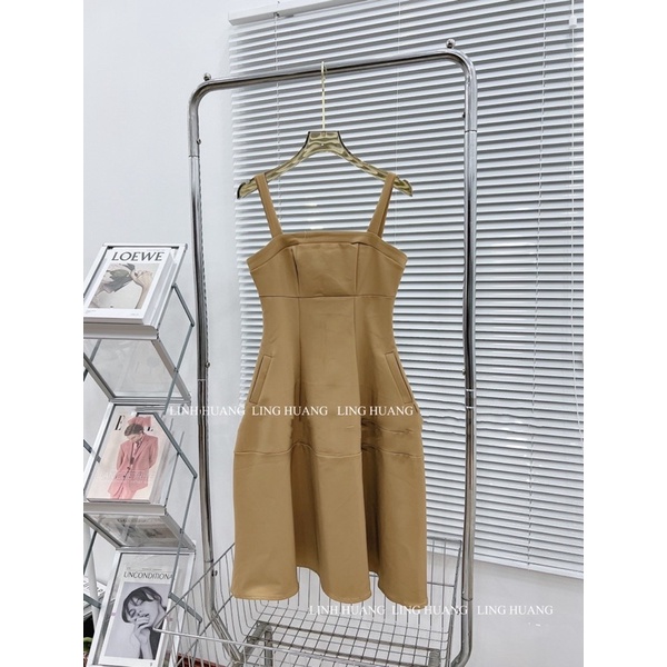 Khaki two-strap dress with soft pockets and perfect shape (real photo)