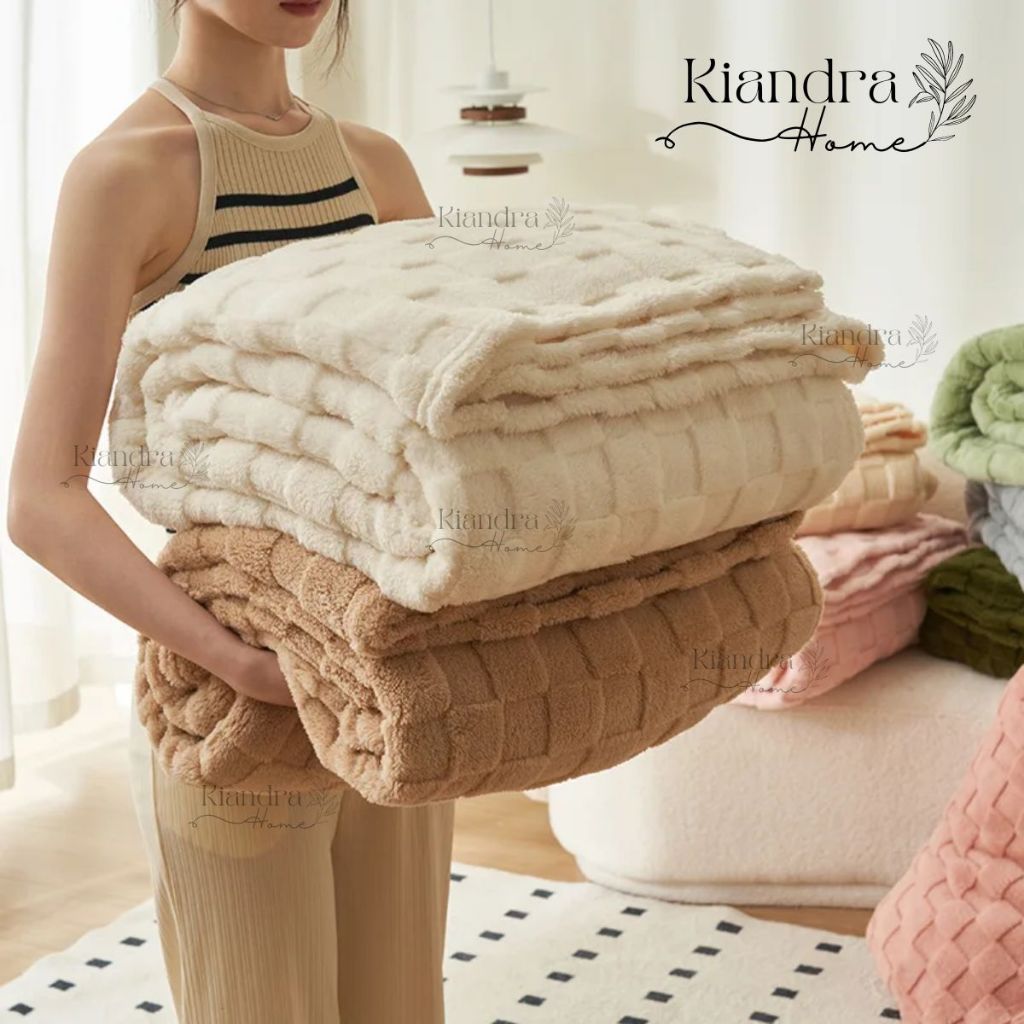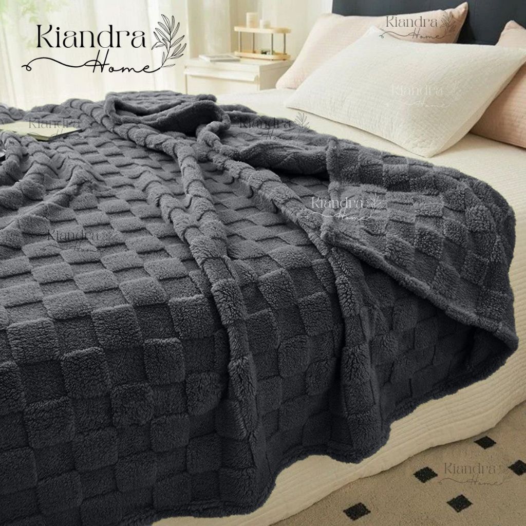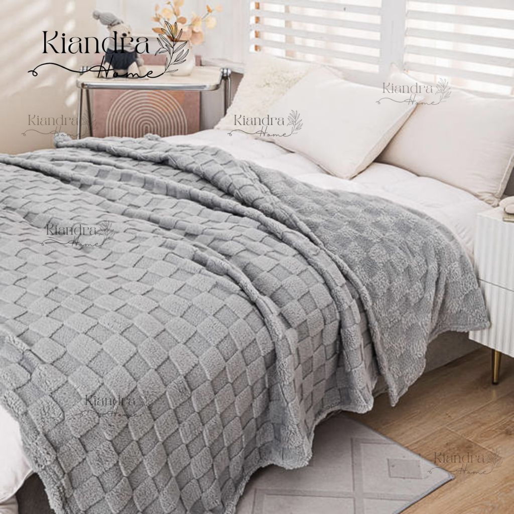 Kiandra Home Plaid Velvet Fleece Blanket Double and King Size Super Soft and Fluffy Thick Blanket