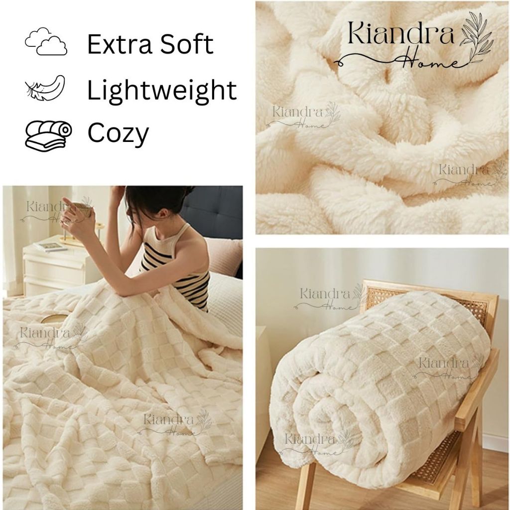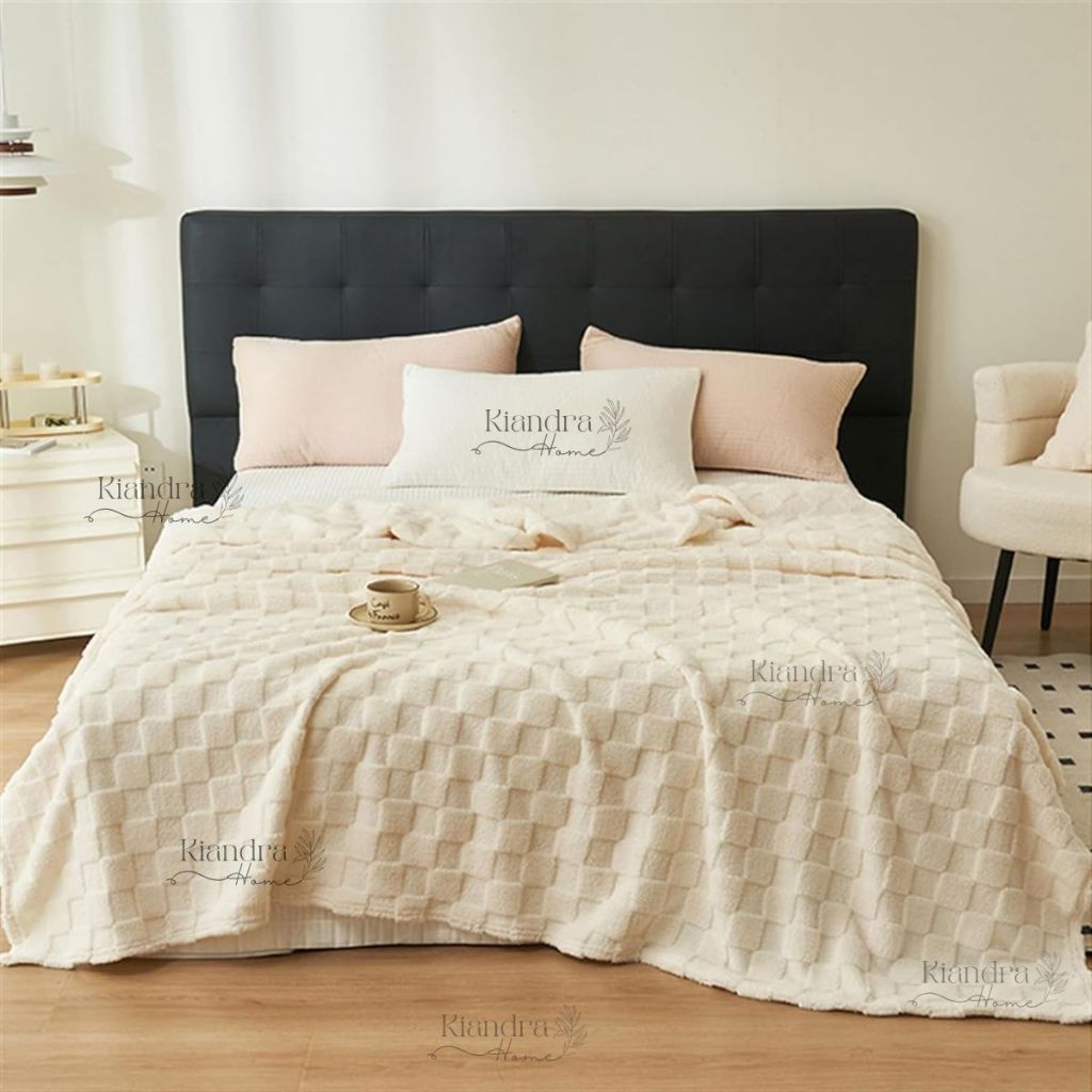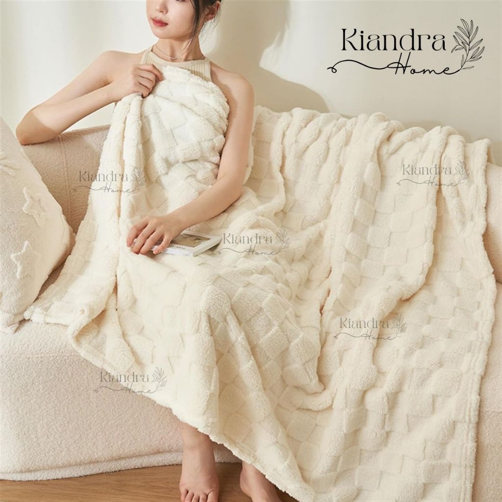 Kiandra Home Plaid Velvet Fleece Blanket Double and King Size Super Soft and Fluffy Thick Blanket