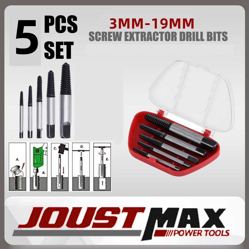 Kickstart ANTON 5/6pcs Broken Bolt Screw Extractor Remover Set Easy Out Drill Bits Tools Kit 3-22mm
