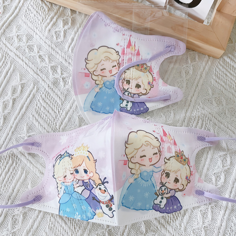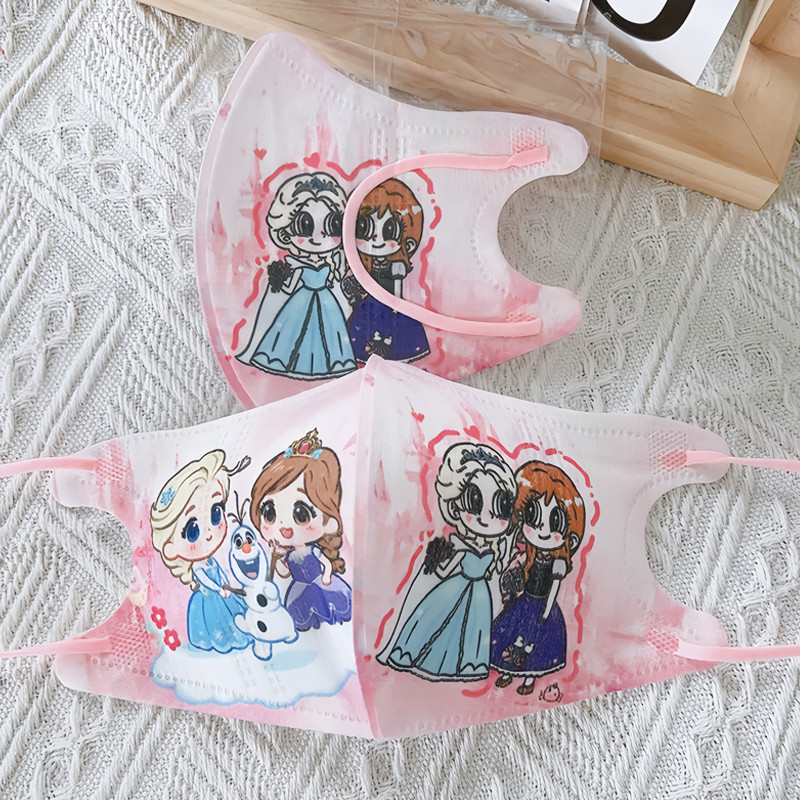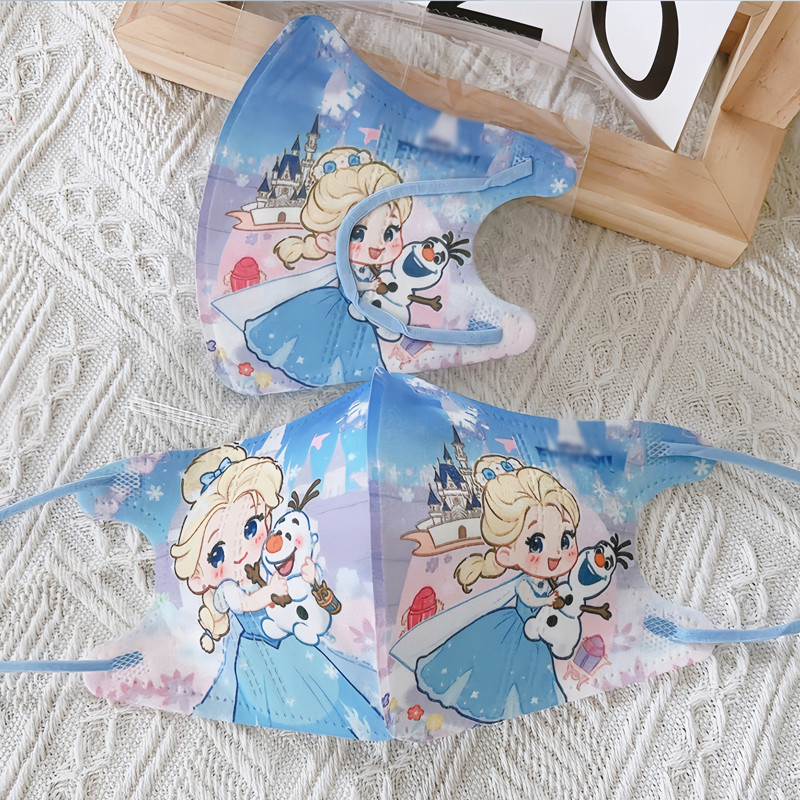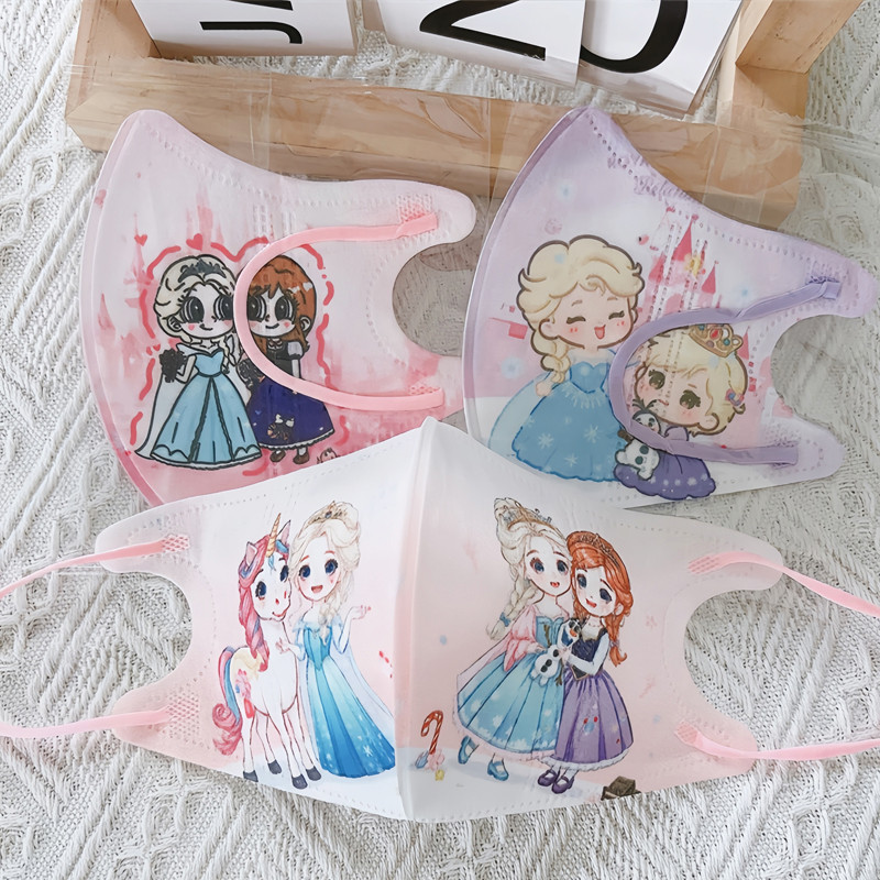 Kid Mask 3D 50pcs Elsa Girls Mask Independently Packaged 3D Children'S Mask High Aesthetic Value Pink Elsa Anna Ice Princess Cartoon Girl Graffiti Child Mask 3-12 age Baby Mask