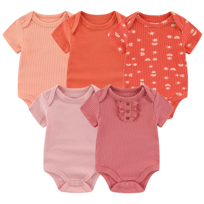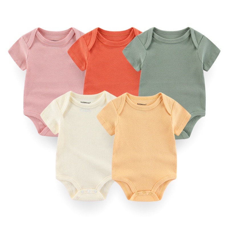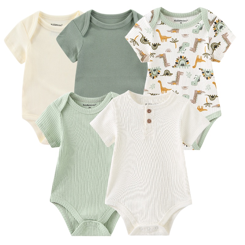 Kiddiezoom 5pcs Unisex Newborn Clothes Baby Boy Cotton Jumpsuit Short-sleeves Bodysuits Set Toddler Girl Clothing 0 To 12 Months Infant Birth Birthday Gift