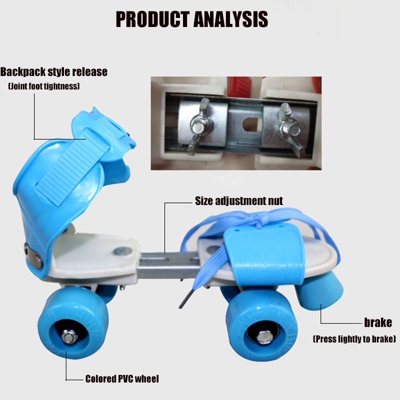 Kids' Quad Roller Skates 4 Wheels Adjustable with Stopping Wheel Roller Skates Outdoor Walking Shoes