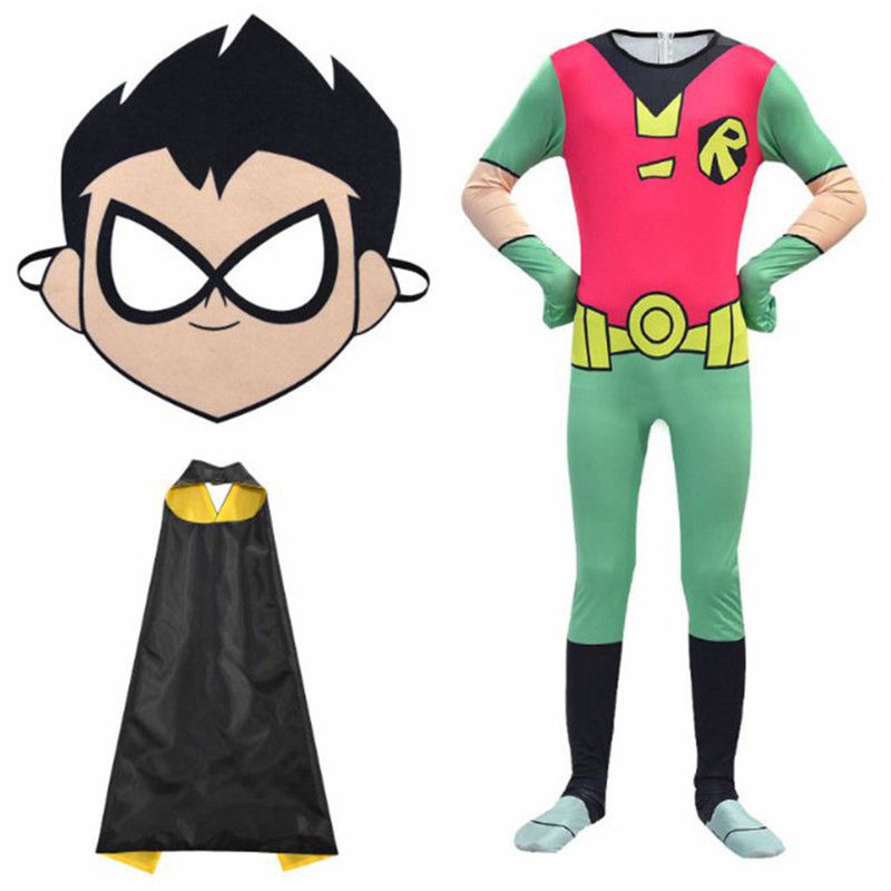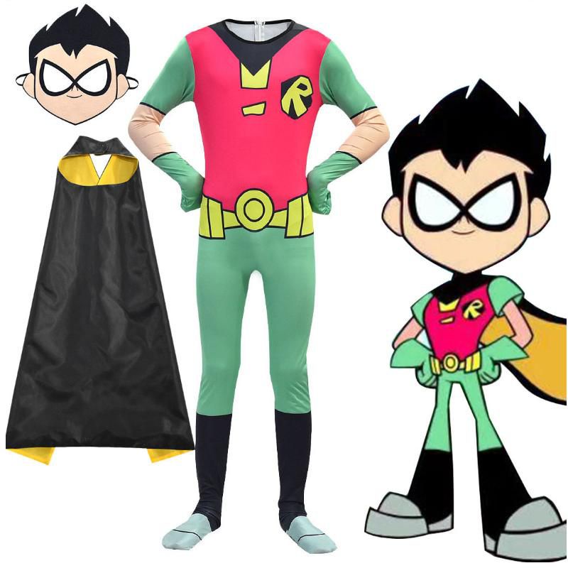 Kids Anime Teen Titan Robin Costume Comic Superhero Cosplay Jumpsuit Fancy Dress Boys Halloween Costume Jumpsuit
