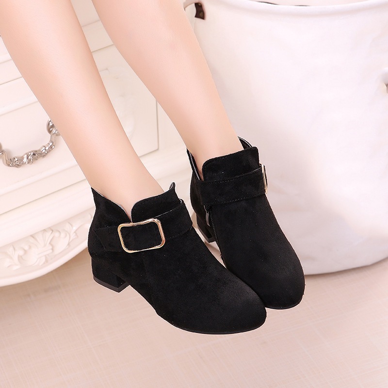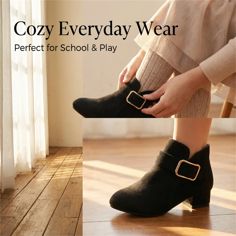 Kids Ankle Boots for Kids Girls Suede Upper High Heels Single Boots Kids Fashion Black Dress Shoes