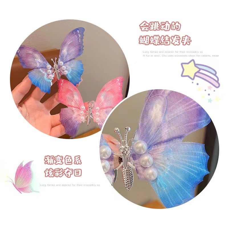 Kids Big Moving Butterfly Hair Clip Double Layer Girl Hair Pin Butterfly Children Hair Clips