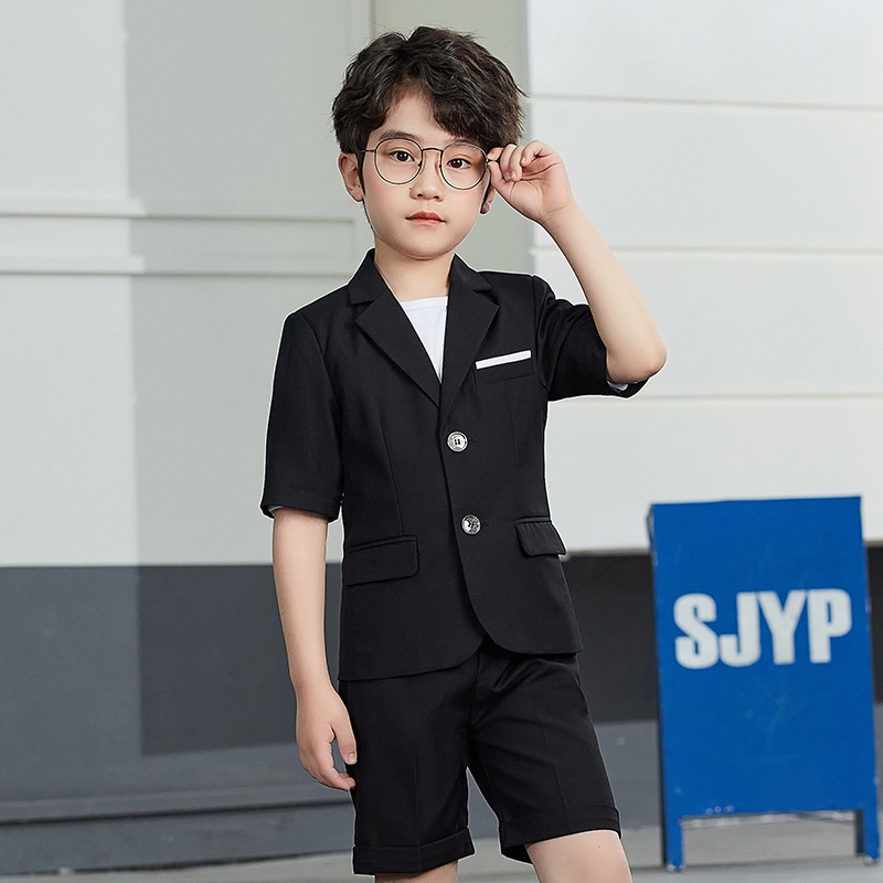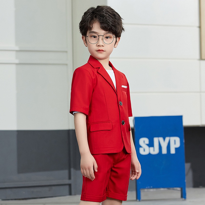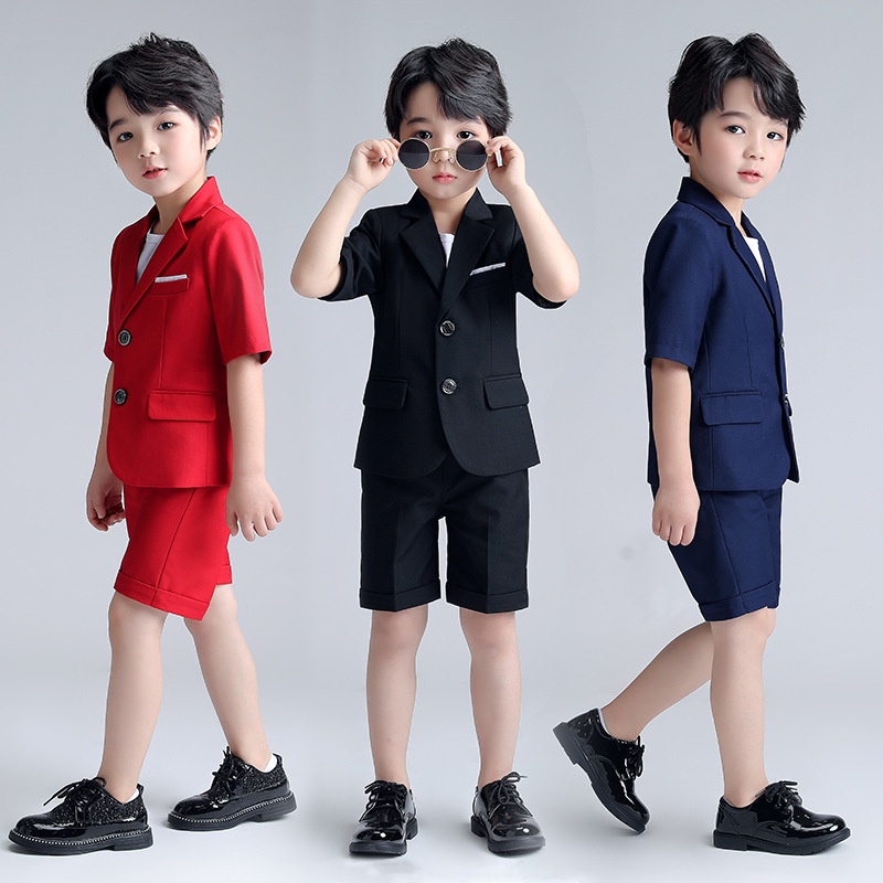 Kids Boys Suit 2025 Summer Children Formal Attire Plaid Blazer Pants Suits Set Gentleman Outfit Dress Toddler Black Red Navy Dresswear Sets 2-14 Years