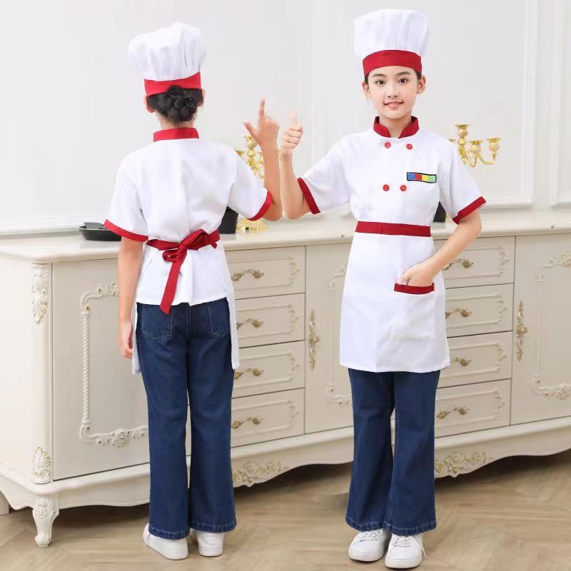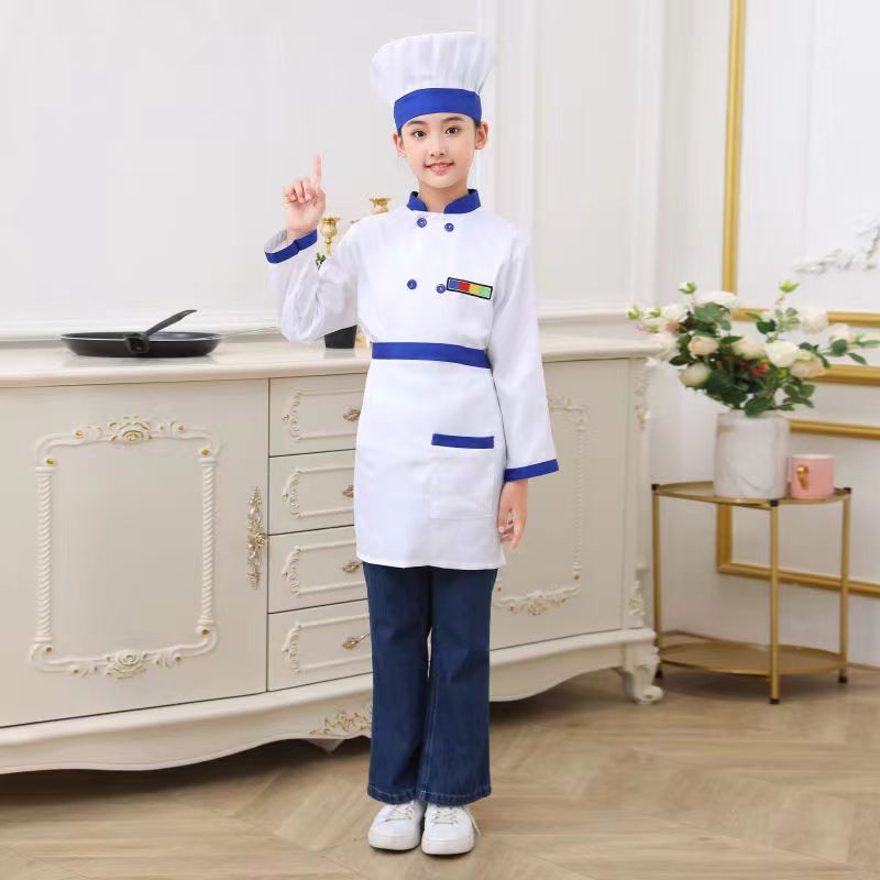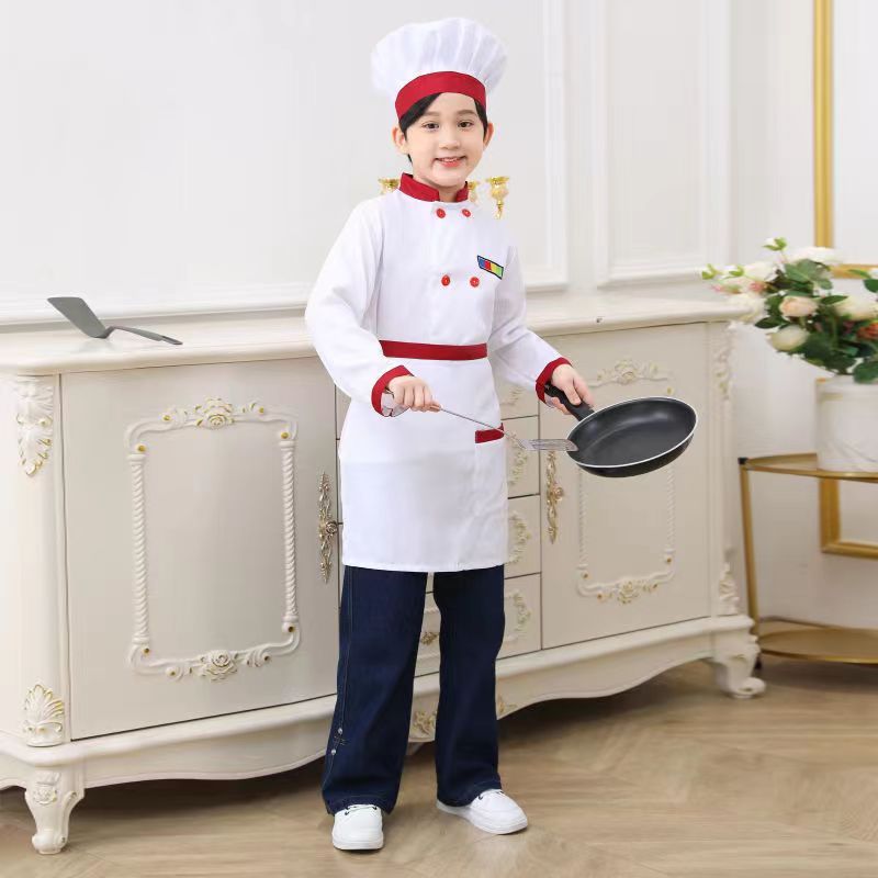 Kids Chef Cosplay Costume Child Cooking Uniform set Hat+Jacket+Apron boy Chef Jacket