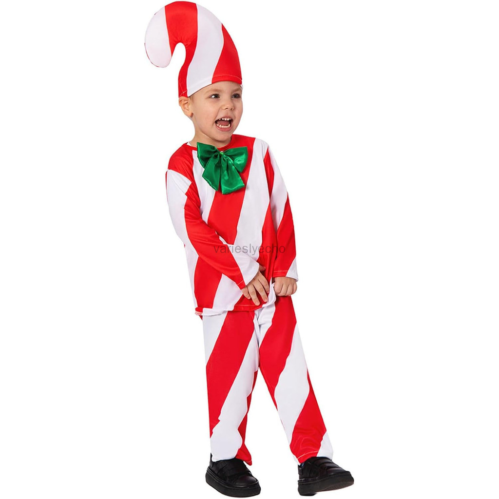 Kids Christmas Candy Cane Costume Cosplay Party Top Pants Hat , Outfits Xmas Holiday Candy Cane Costume