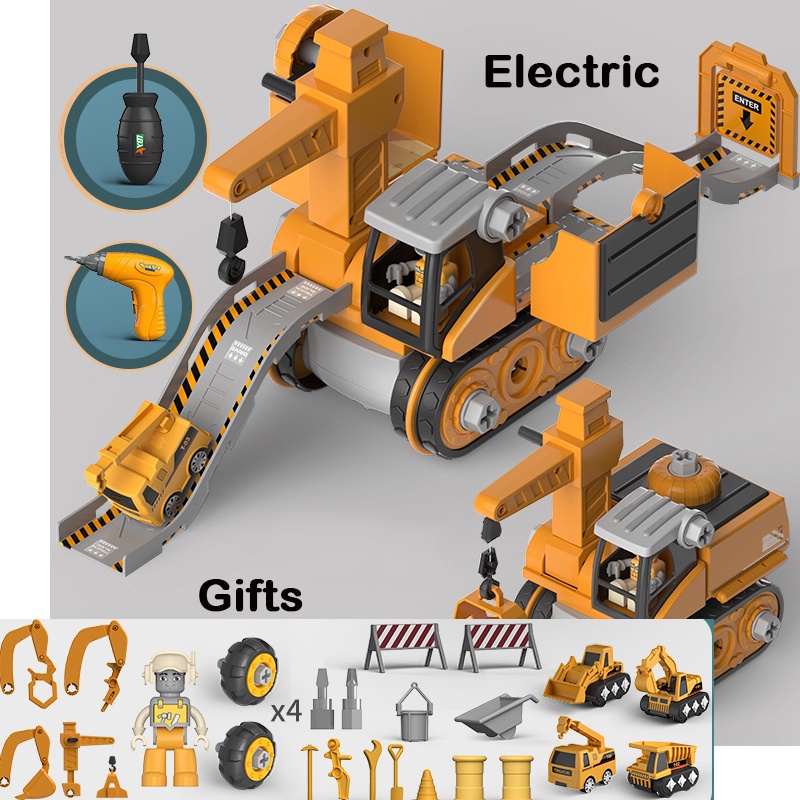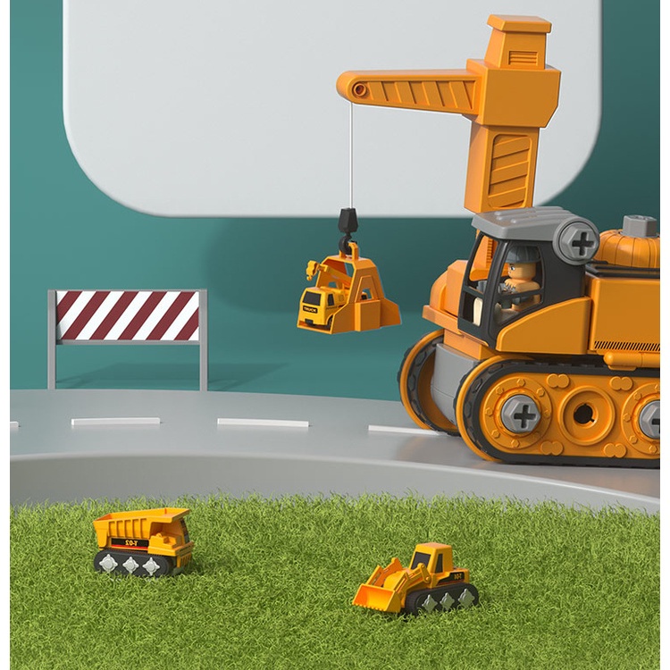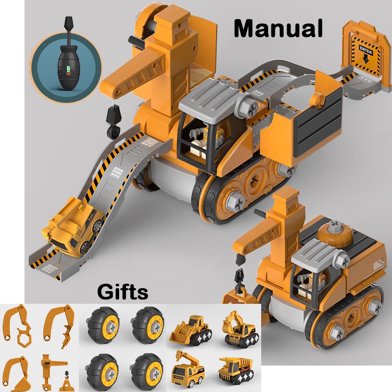 Kids Construction Toys Set Big Toy Excavator and Crane with Engineering Vehicle Playsets Mini Forklift Dump Truck Digger Bulldozer Gift for Toddler Boy Girl Age 2 3 4 5 6 7 Year