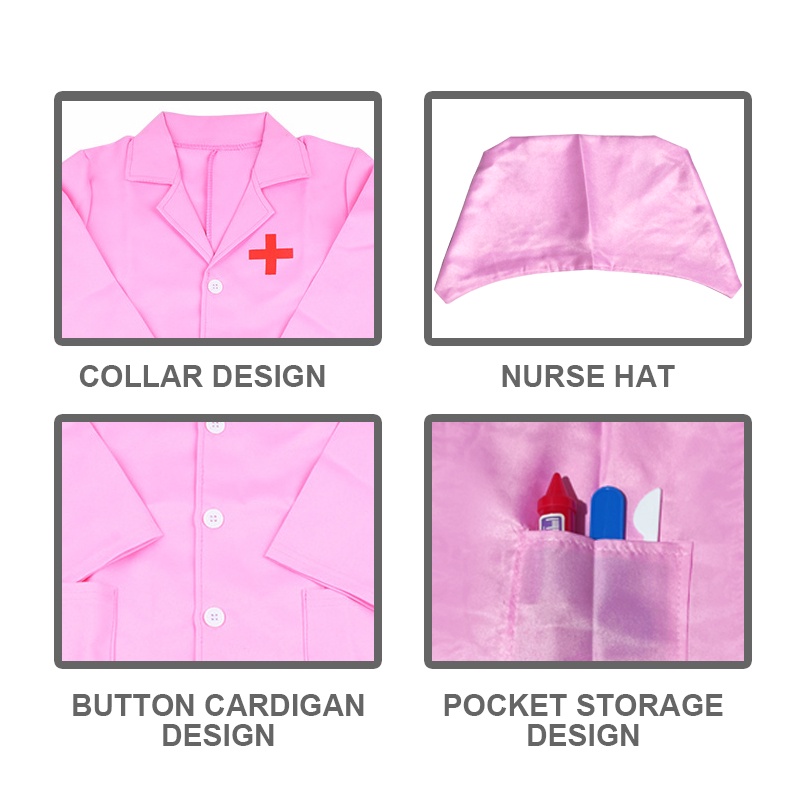 Kids Costume Doctor Gown Little Nurse Role Play nurse uniform pretend play frontliner free toy