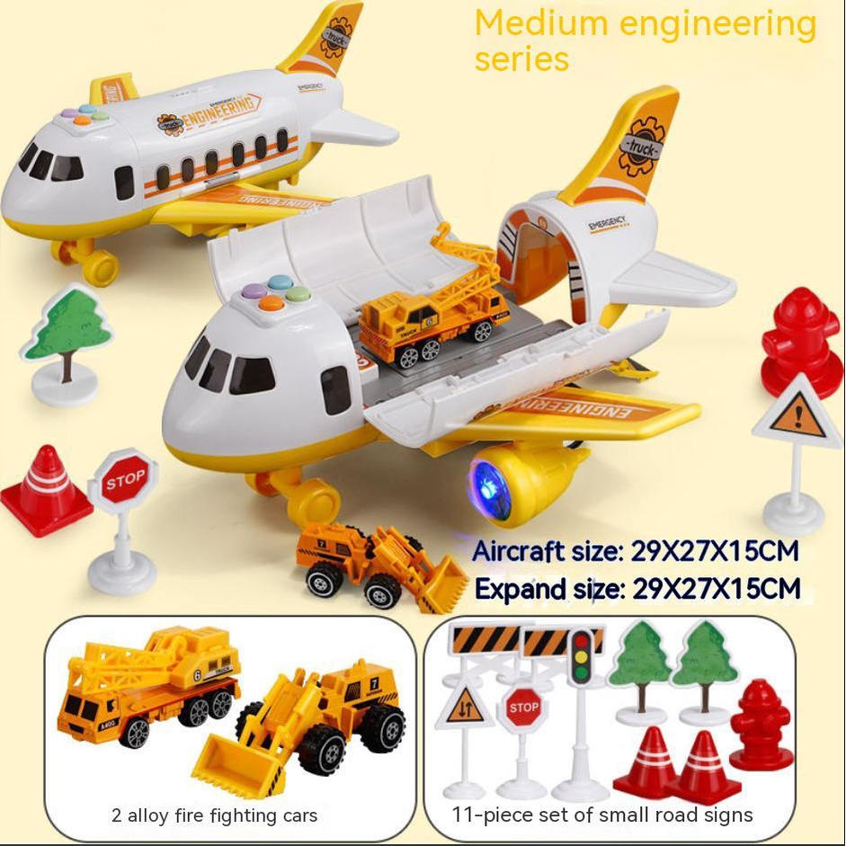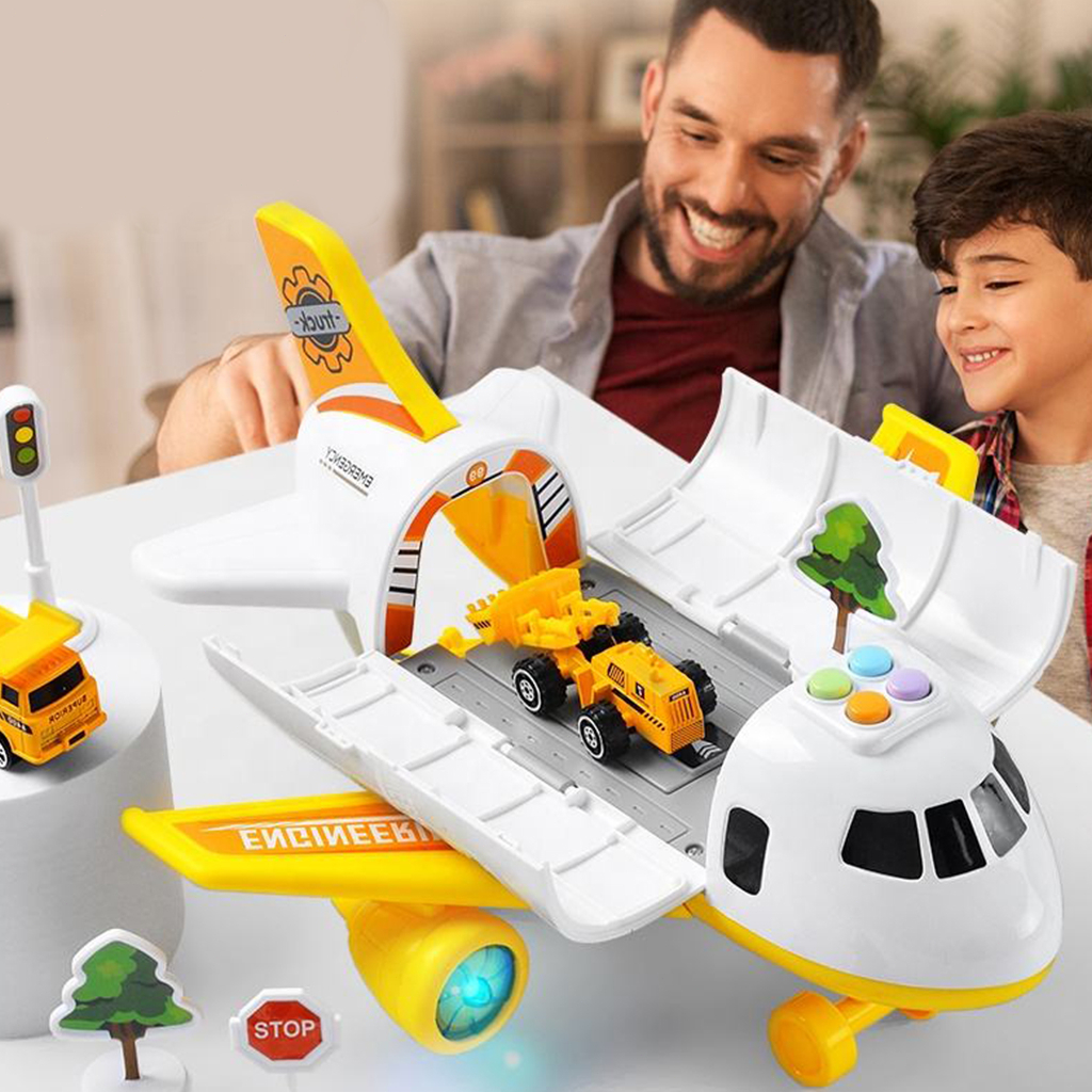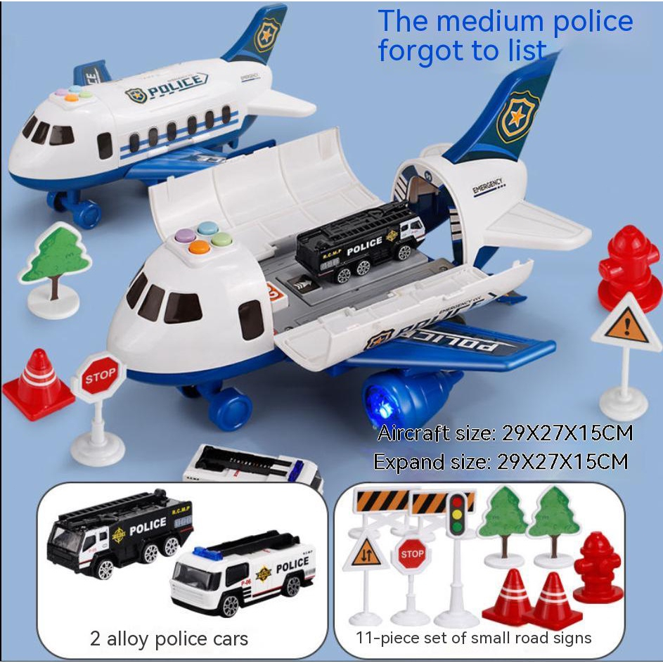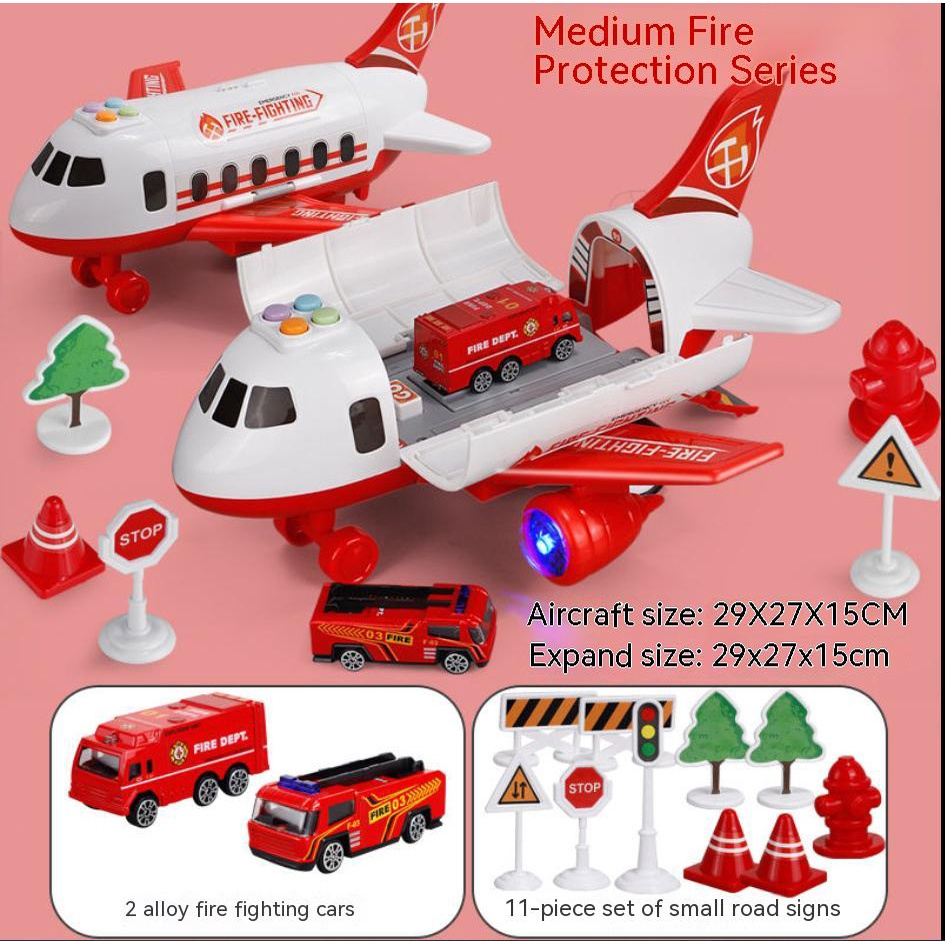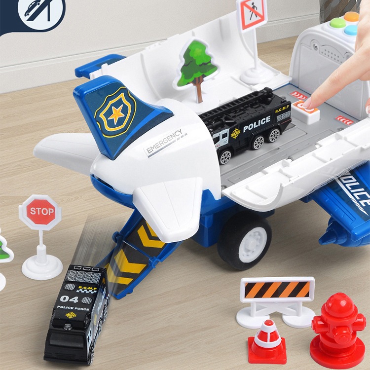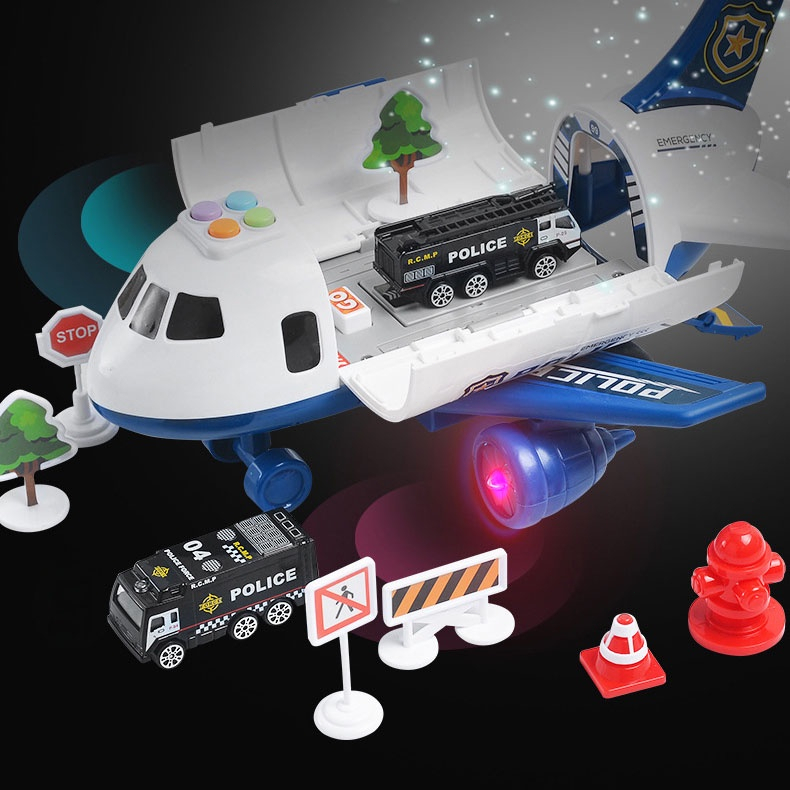Kids Early Education Airplane Model Toy With Sounds Lights with 2 Cars 12 Road Signs Toy for Kid Boy