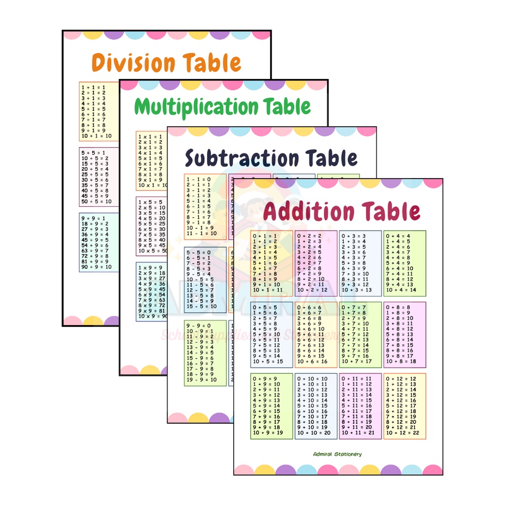 Kids Educational Mathematics Arithmetic Operations A4 Laminated Wall Chart Learning Materials