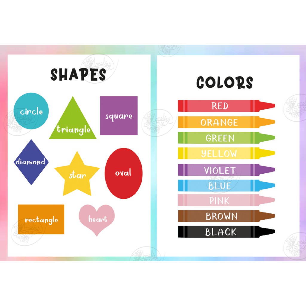 Kids Educational Wall Chart (Rainbow Set) Alphabet, Name, Shapes, Days, Months, Colors, Numbers -A4