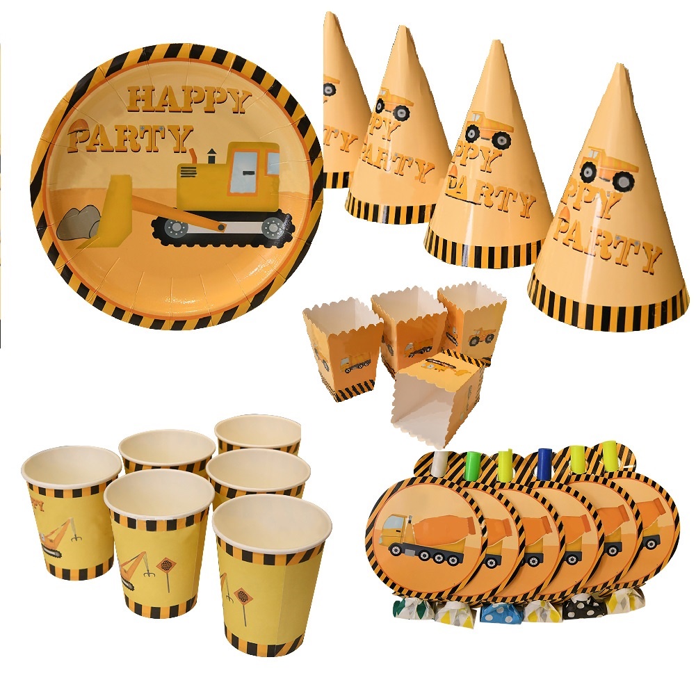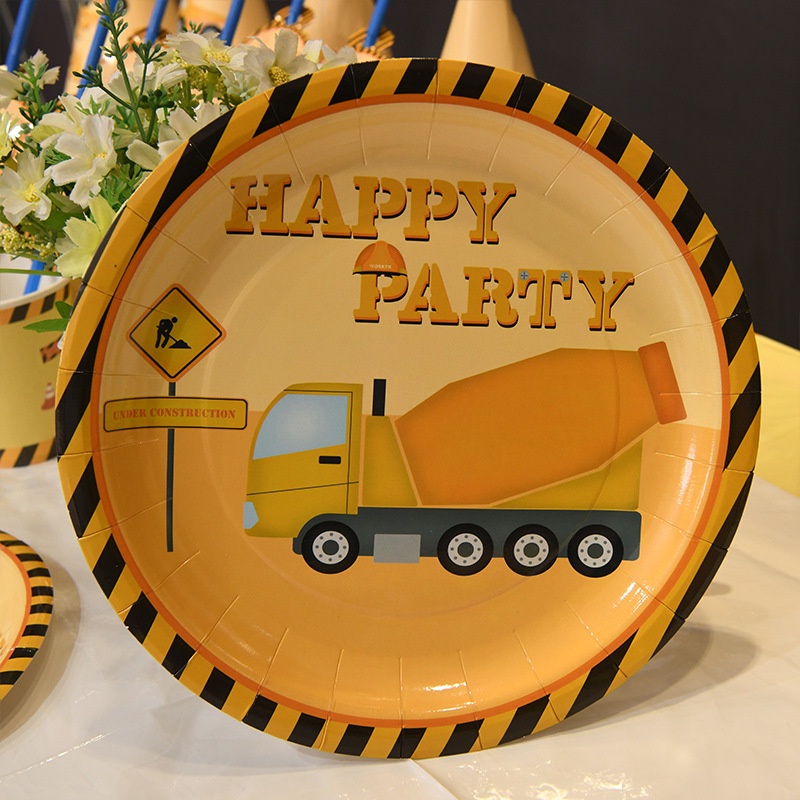 Kids Favors Engineering Vehicles Party Theme Birthday Party Plates Cups Flag Napkin Tableware Party Supplies Birthday