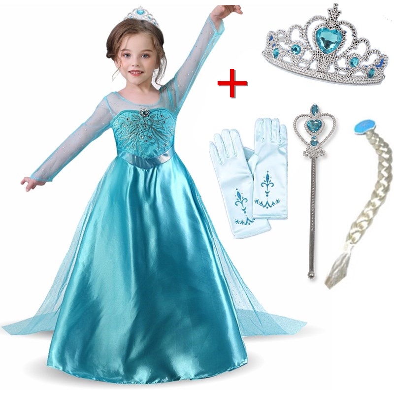 Kids Frozen Princess Elsa Dress for Girls Birthday Party Dress Halloween Costume Children Christmas Clothes